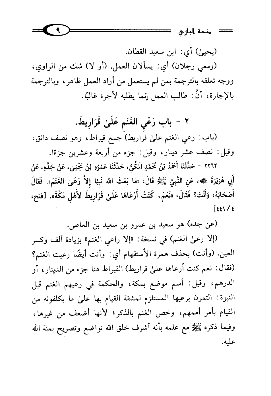 2 - بَابُ رَعْيِ الغَنَمِ عَلَى قَرَارِيطَ