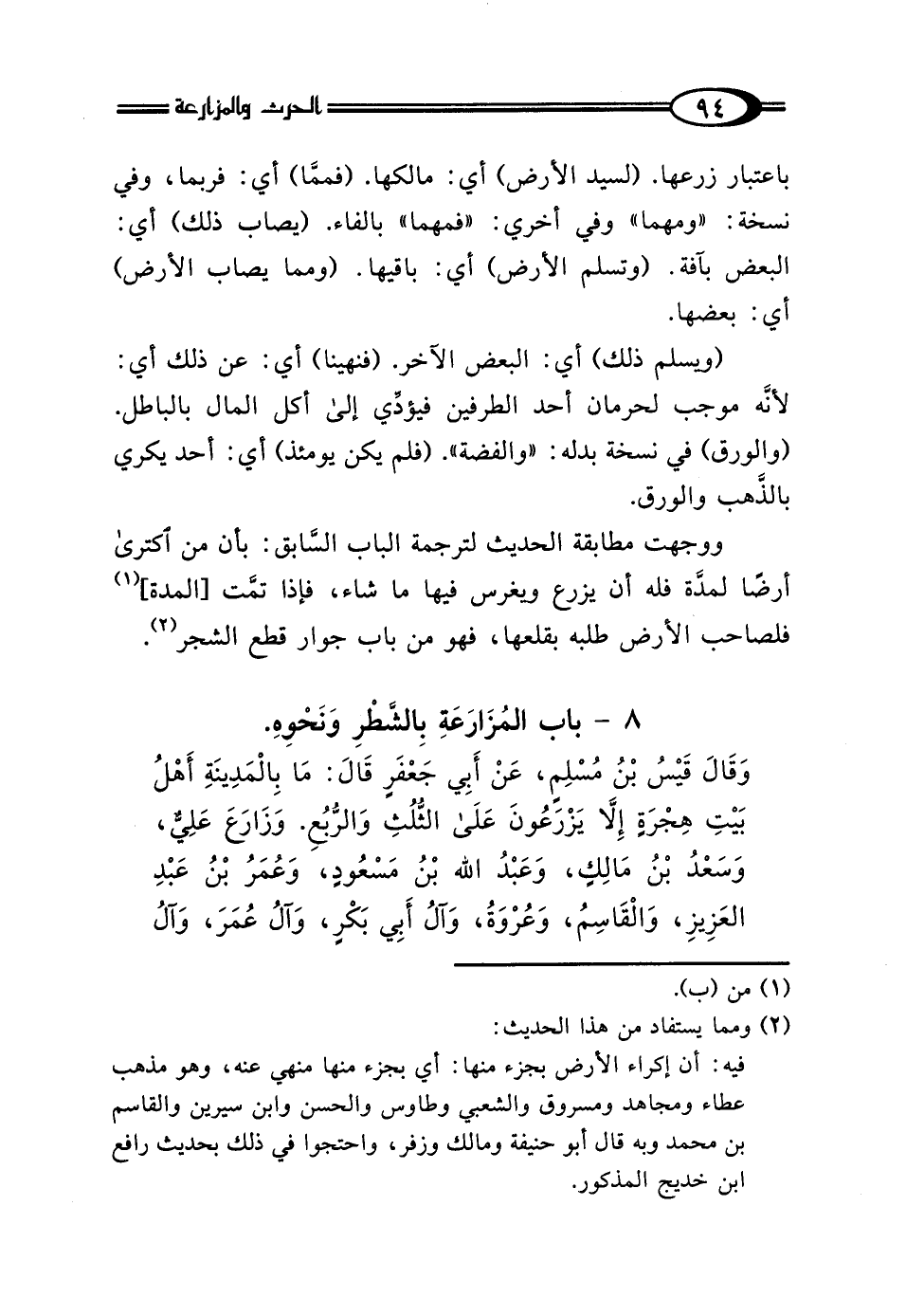 8 - بَابُ المُزَارَعَةِ بِالشَّطْرِ وَنَحْوهِ