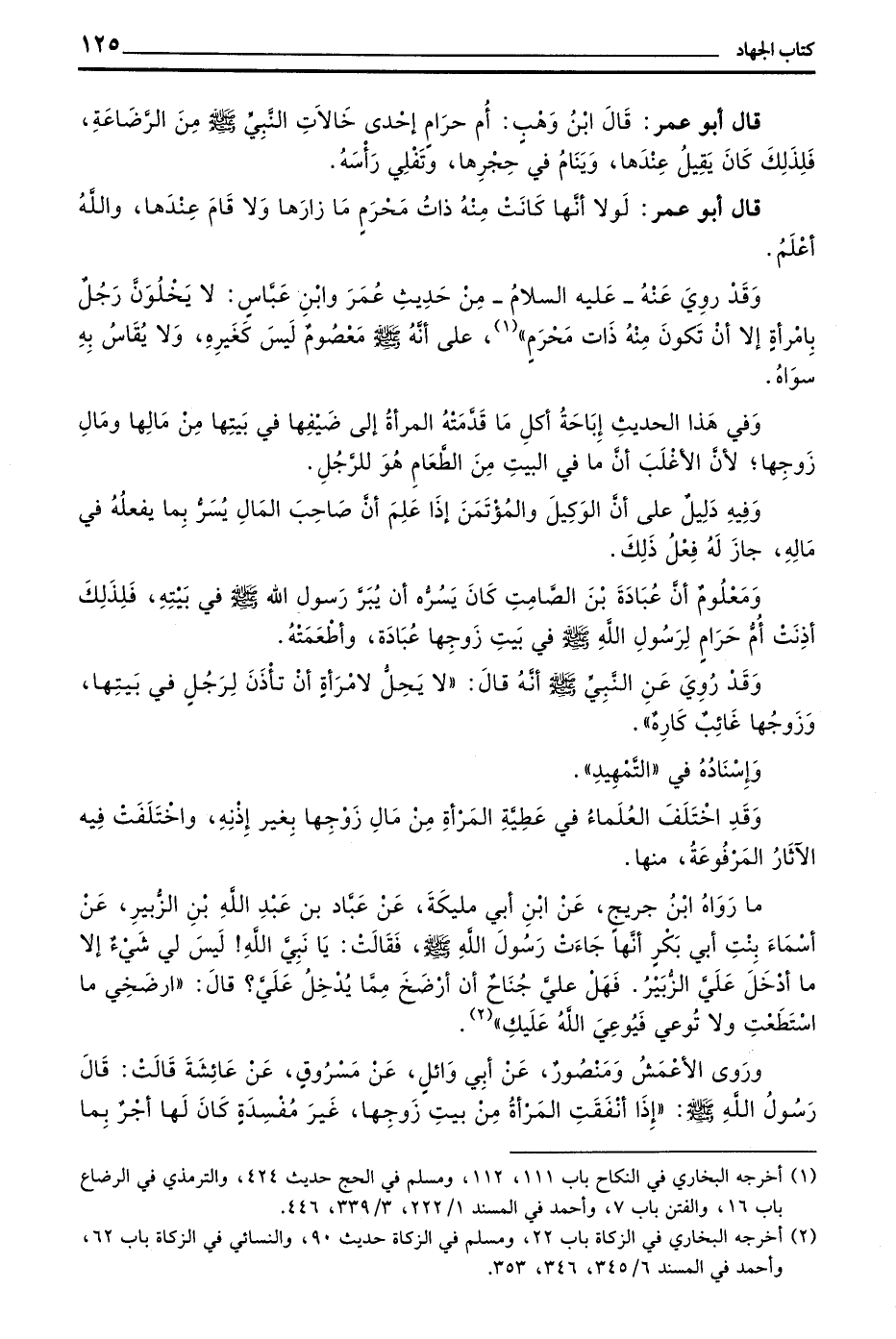 وَقَدِ اخْتَلَفَ الْعُلَمَاءُ فِي عَطِيَّةِ الْمَرْأَةِ مِنْ مَالِ زَوْجِهَا بِغَيْرِ إِذْنِهِ وَاخْتَلَفَتْ فِيهِ الْآثَارُ المرفوعة منها