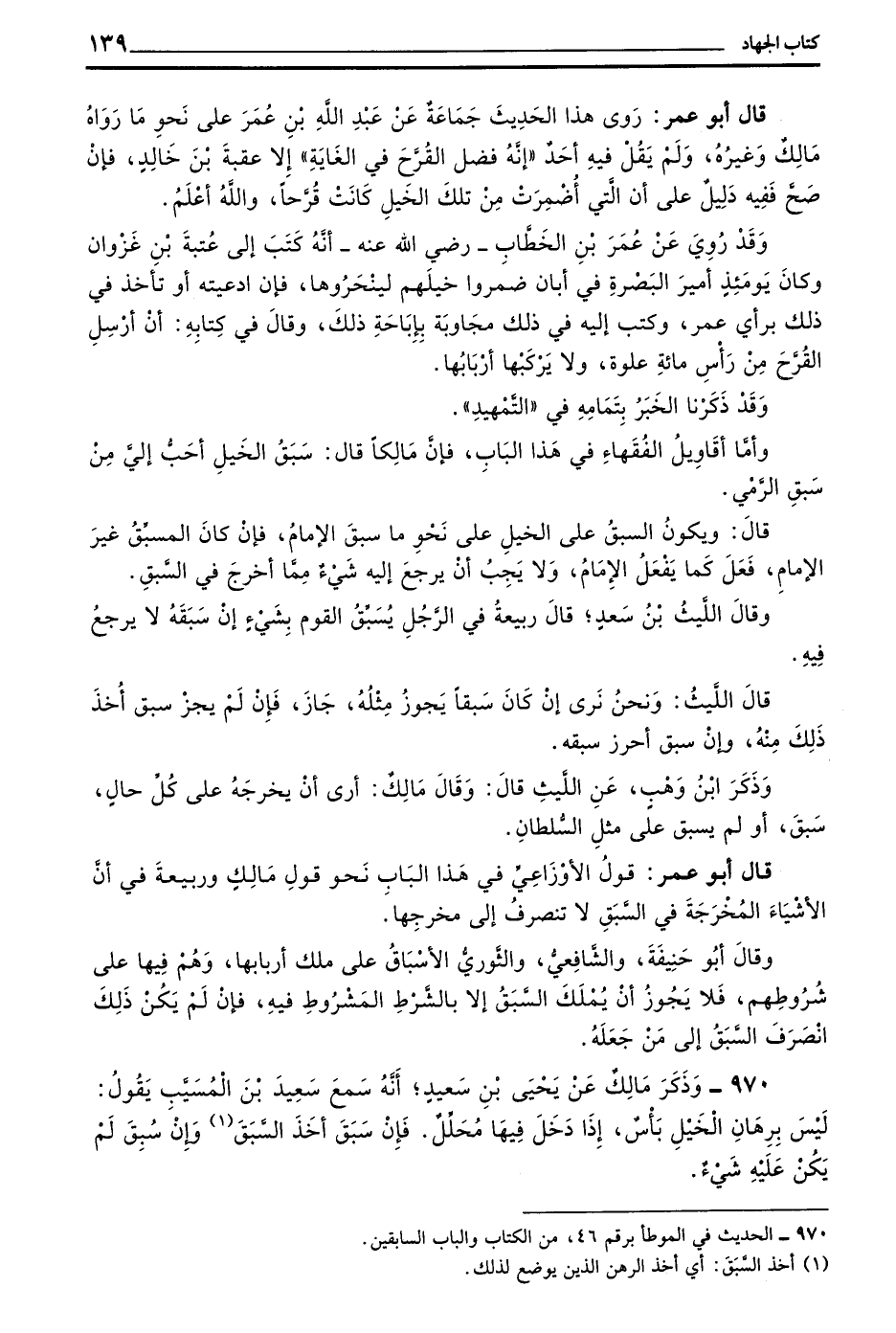 وَأَمَّا أَقَاوِيلُ الْفُقَهَاءِ فِي هَذَا الْبَابِ فَإِنَّ مَالِكًا قَالَ سَبَقُ الْخَيْلِ أَحَبُّ إِلَيَّ مِنْ سَبَقِ الرَّمْيِ