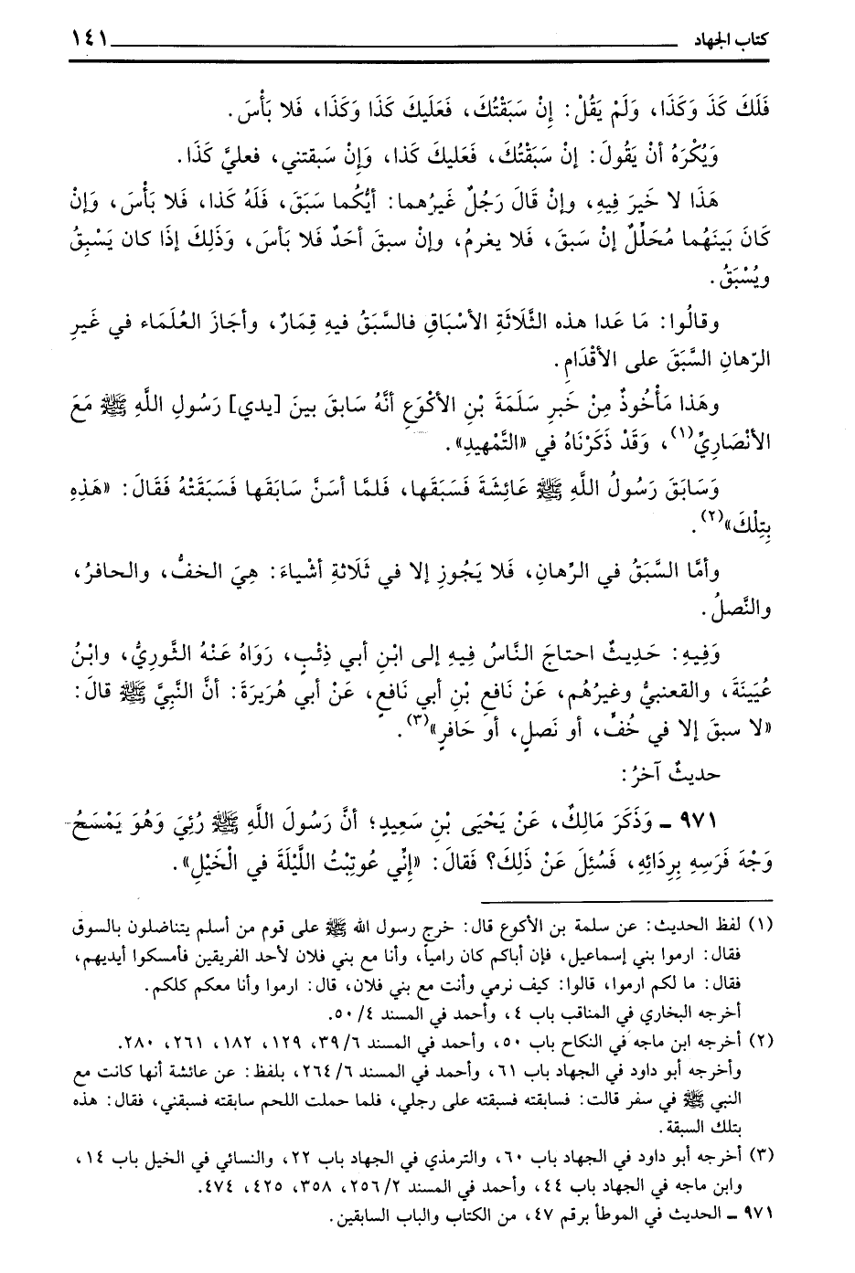 وَقَالُوا مَا عَدَا هَذِهِ الثَّلَاثَةَ الْأَسْبَاقَ فَالسَّبَقُ فِيهِ قِمَارٌ وَأَجَازَ الْعُلَمَاءُ فِي غَيْرِ الرِّهَانِ السَّبَقَ عَلَى الْأَقْدَامِ