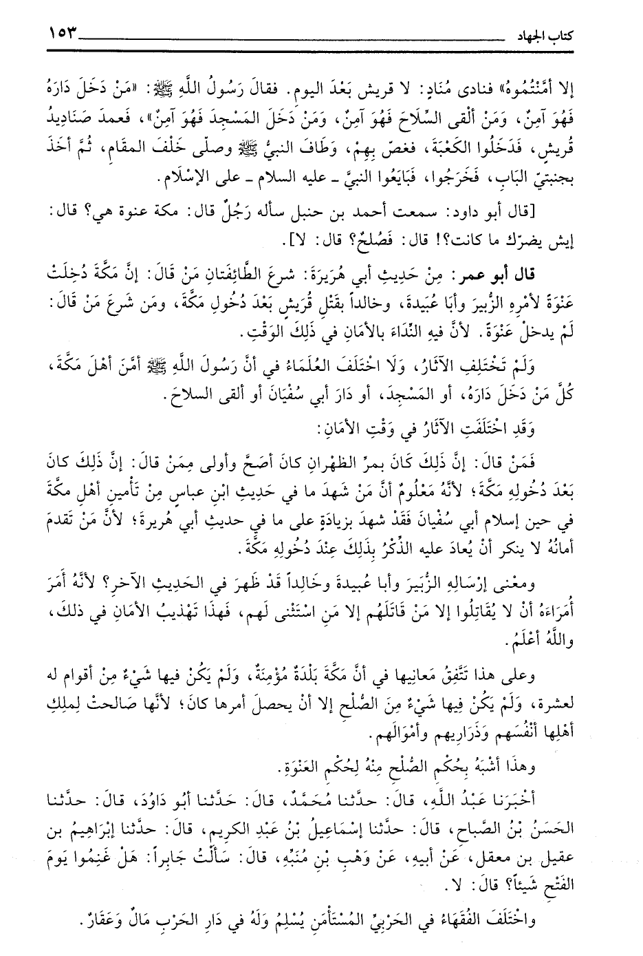 قَالَ أَبُو دَاوُدَ سَمِعْتُ أَحْمَدَ بْنَ حَنْبَلٍ سَأَلَهُ رَجُلٌ قَالَ مَكَّةُ عَنْوَةٌ هِيَ قَالَ إِيشِ يَضُرُّكَ مَا كَانَتْ! قَالَ فَصُلْحٌ قَالَ لَا