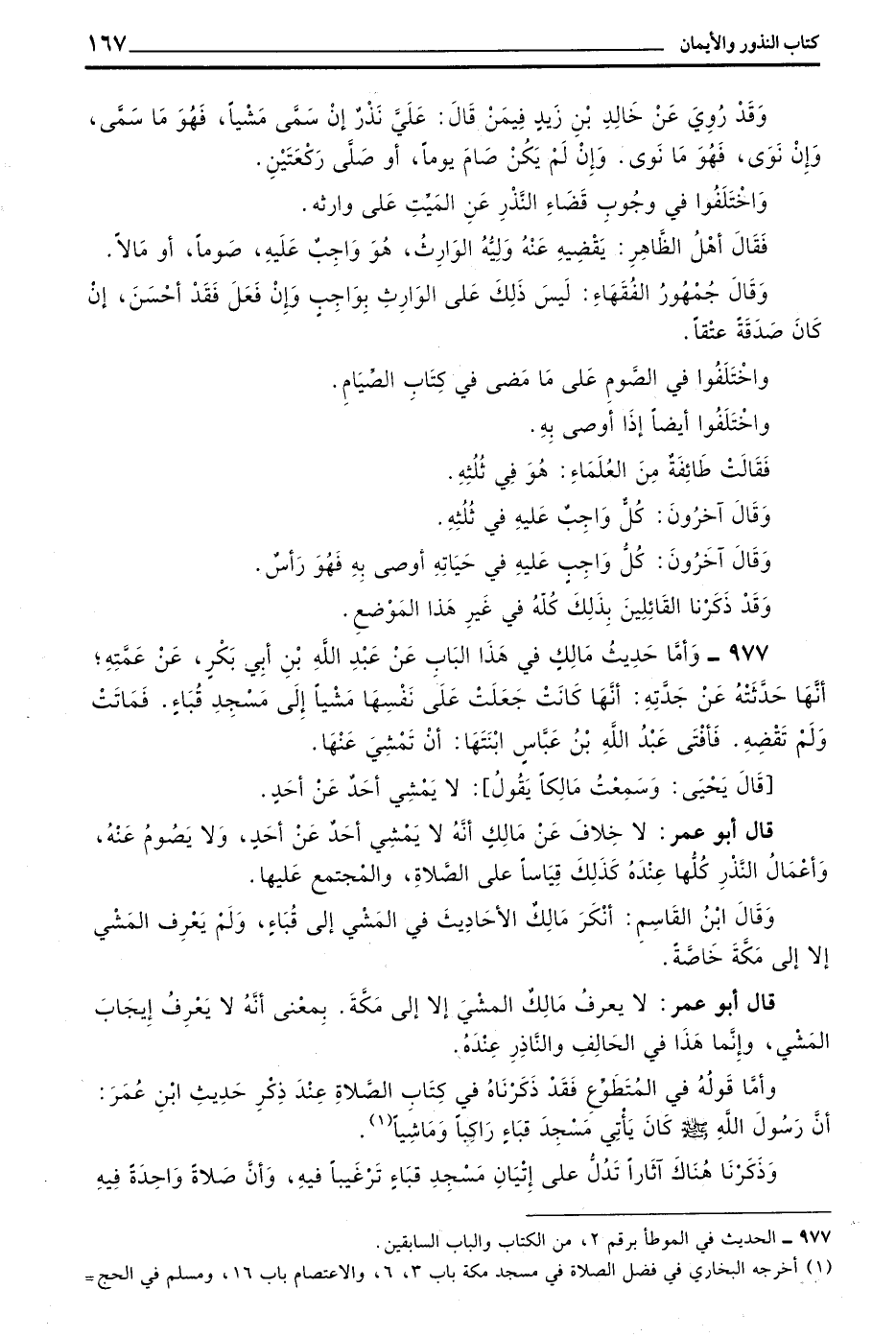 977 - وَأَمَّا حَدِيثُ مَالِكٍ فِي هَذَا الْبَابِ عَنْ عَبْدِ اللَّهِ بْنِ أَبِي بَكْرٍ عَنْ عَمَّتِهِ أَنَّهَا حَدَّثَتْهُ عَنْ جَدَّتِهِ أَنَّهَا كَانَتْ جَعَلَتْ عَلَى نَفْسِهَا مَشْيًا إِلَى مَسْجِدِ قُبَاءٍ
