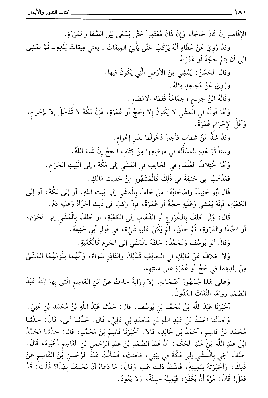 وَأَمَّا اخْتِلَافُ الْعُلَمَاءِ فِي الْحَالِفِ فِي الْمَشْيِ إِلَى مَكَّةَ وَالَى الْبَيْتِ الْحَرَامِ