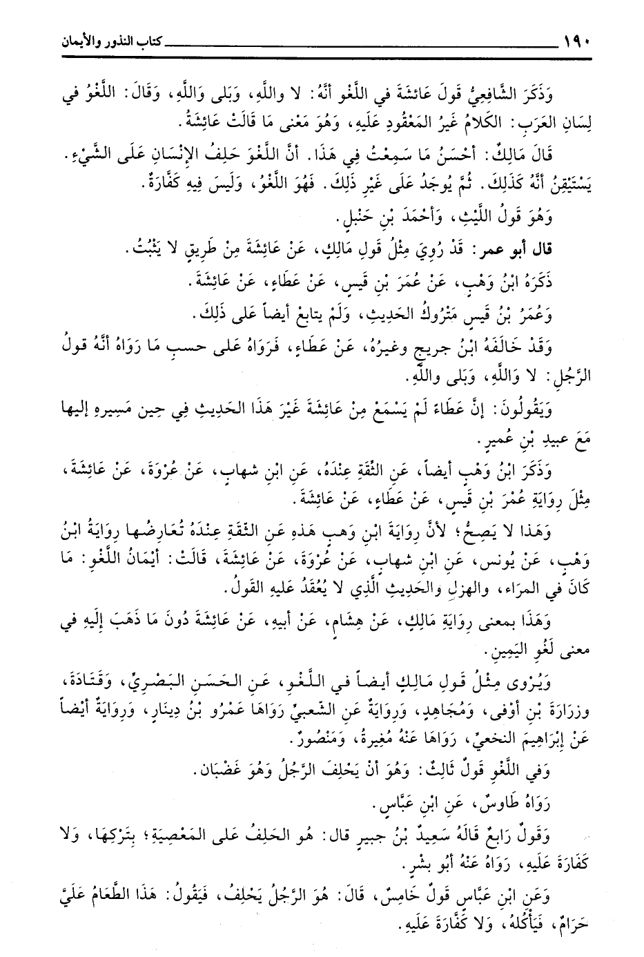 وَيُرْوَى مِثْلُ قَوْلِ مَالِكٍ أَيْضًا فِي اللَّغْوِ عَنِ الْحَسَنِ الْبَصْرِيِّ وَقَتَادَةَ وَزُرَارَةَ بْنِ أَوْفَى وَمُجَاهِدٍ وَرِوَايَةٌ عَنِ الشَّعْبِيِّ رَوَاهَا عَمْرُو بْنُ دِينَارٍ وَرِوَايَةٌ أَيْضًا عَنْ إِبْرَاهِيمَ النَّخَعِيِّ رَوَاهَا عَنْهُ مُغِيرَةُ وَمَنْصُورٌ