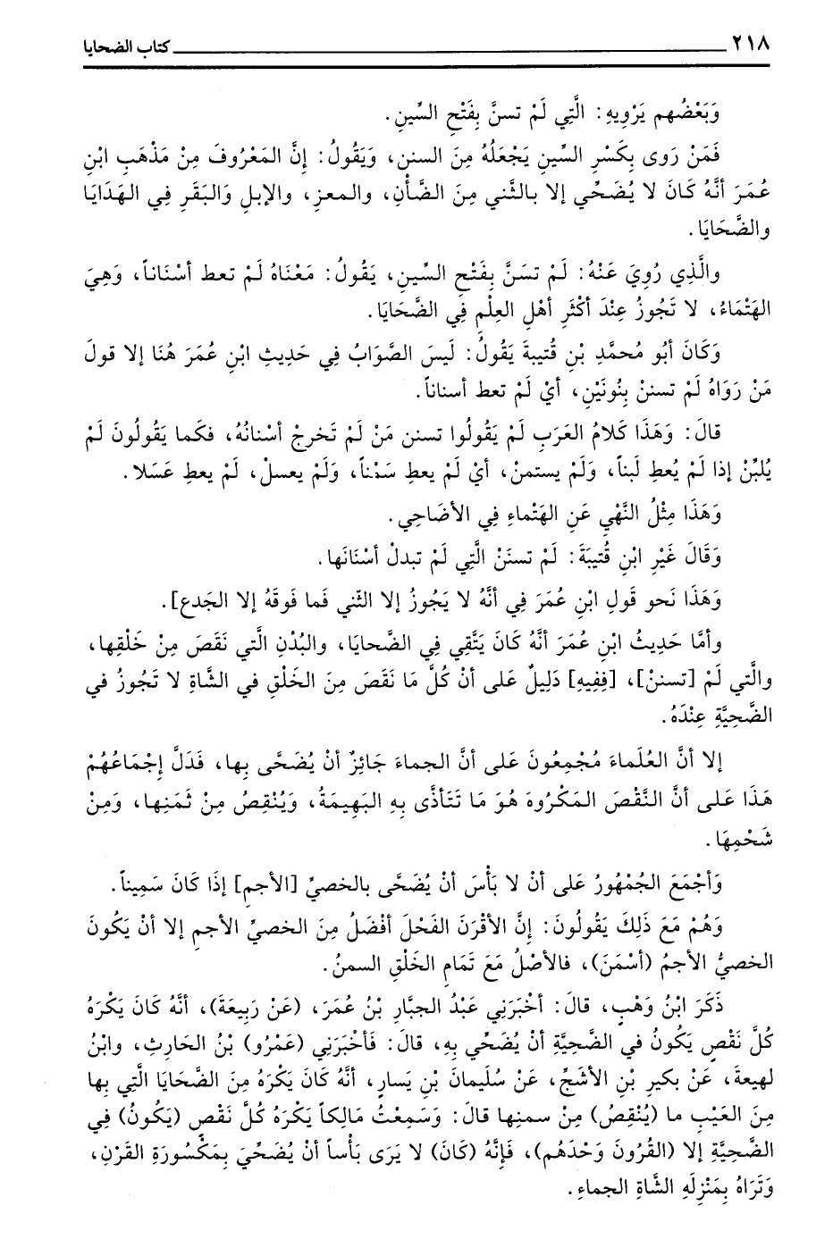 وَهُمْ مَعَ ذَلِكَ يَقُولُونَ إِنَّ الْأَقْرَنَ الْفَحْلَ أَفْضَلُ مِنَ الْخَصِيِّ الْأَجَمِّ إِلَّا أَنْ يَكُونَ الْخَصِيُّ الْأَجَمُّ (أَسْمَنُ) فَالْأَصْلُ مَعَ تَمَامِ الْخَلْقِ السِّمَنُ