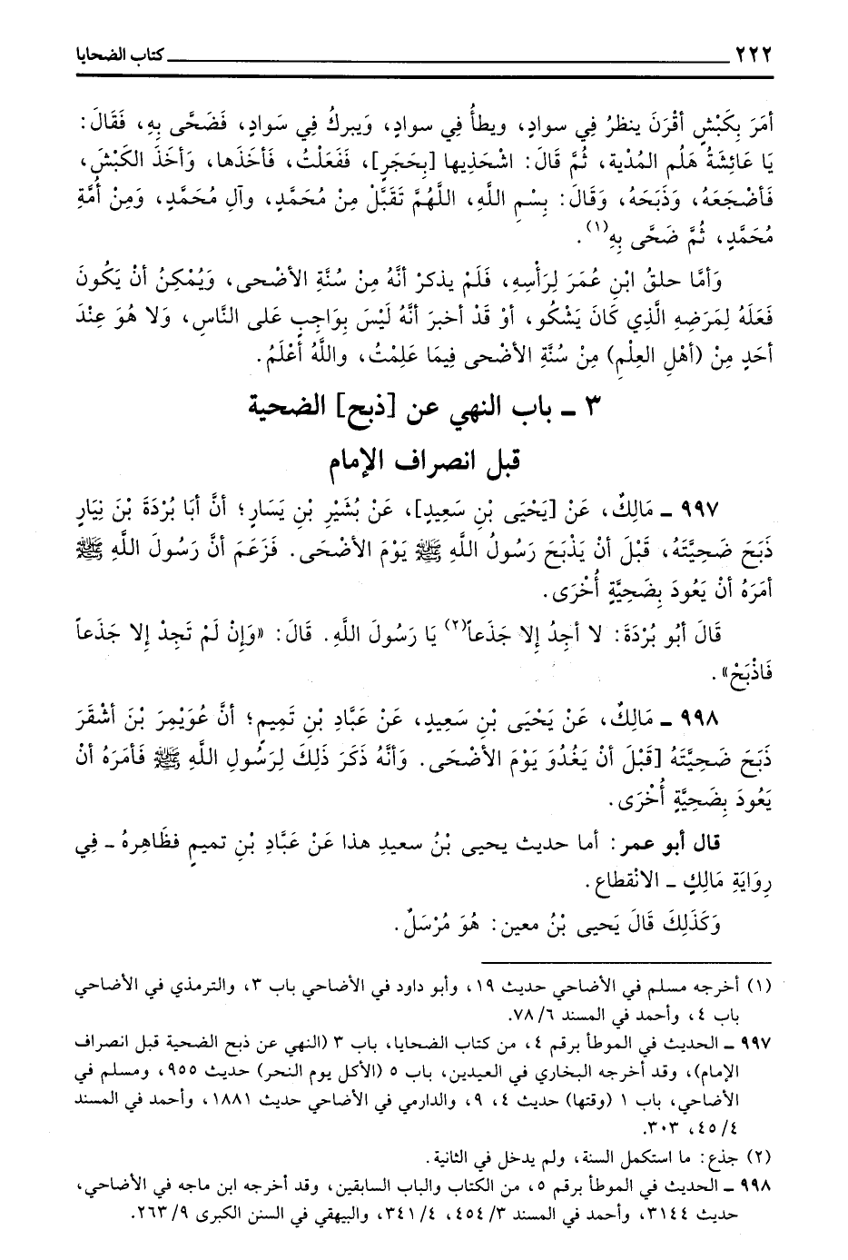 (3 - بَابُ النَّهْيِ عَنْ ذَبْحِ الضَّحِيَّةِ قَبْلَ انْصِرَافِ الْإِمَامِ)