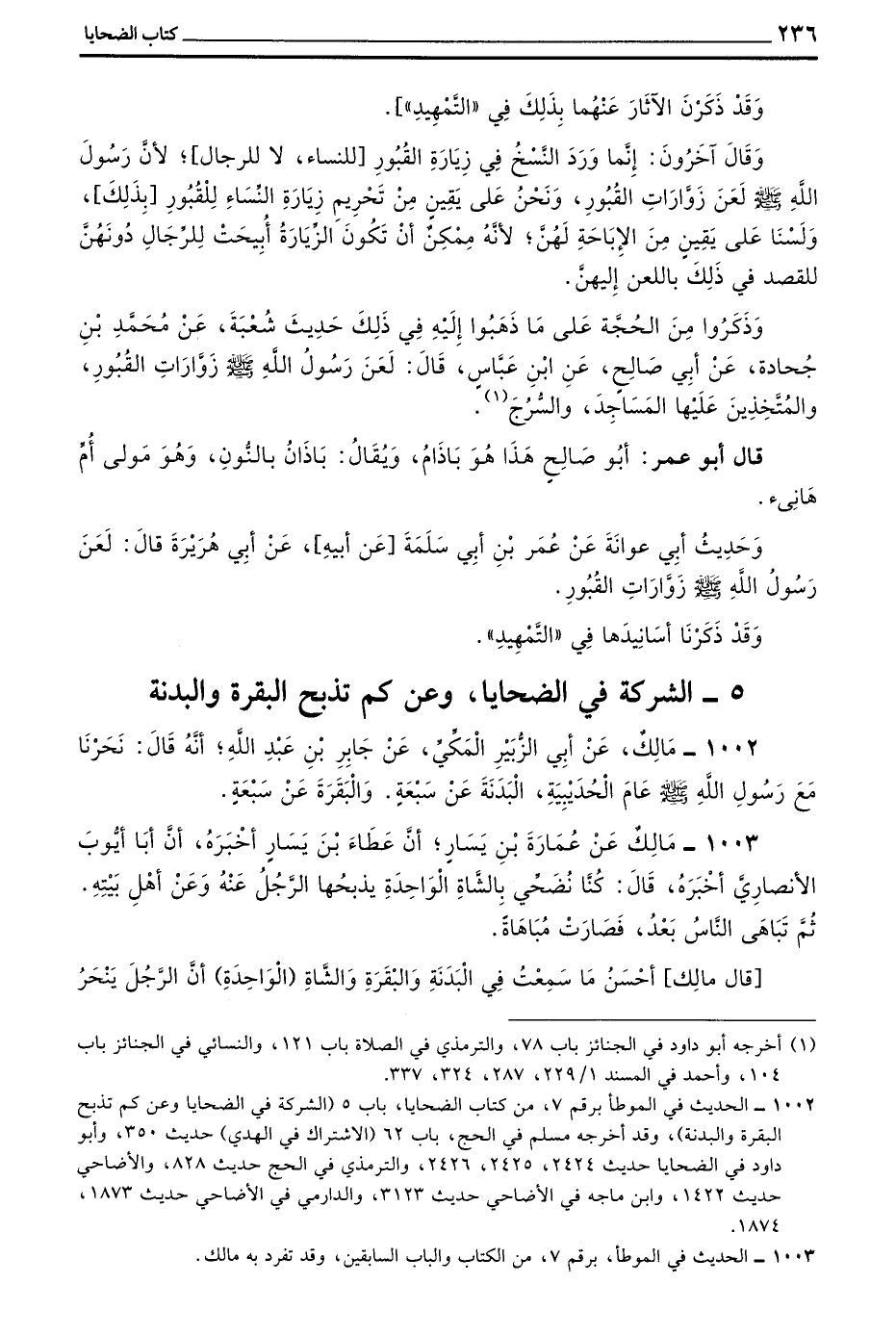 1002 - مَالِكٌ عَنْ أَبِي الزُّبَيْرِ الْمَكِّيِّ عَنْ جَابِرِ بْنِ عَبْدِ اللَّهِ أَنَّهُ قَالَ نَحَرْنَا مَعَ رَسُولِ اللَّهِ صَلَّى اللَّهُ عَلَيْهِ وَسَلَّمَ عَامَ الْحُدَيْبِيَةِ الْبَدَنَةَ عَنْ سَبْعَةٍ وَالْبَقَرَةَ عَنْ سبعة يحيى