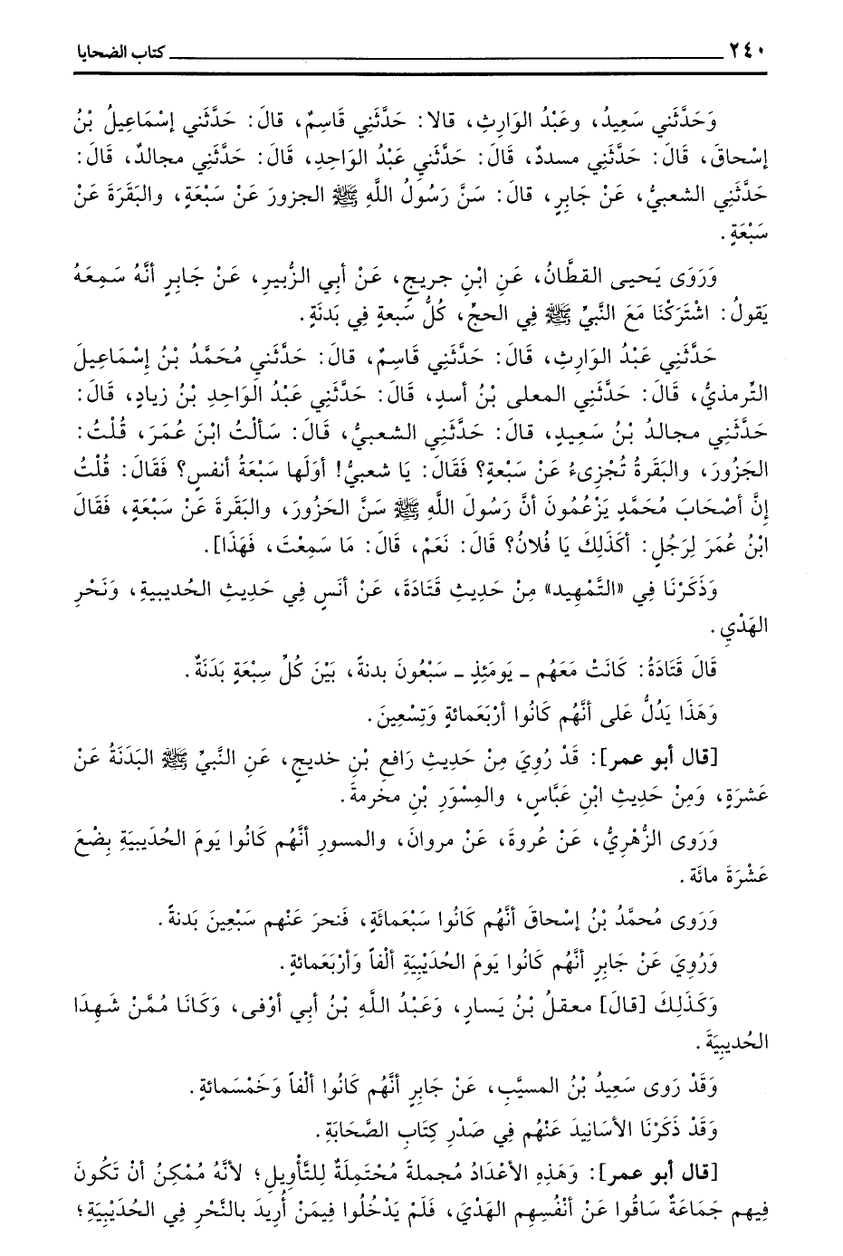 قَالَ أَبُو عُمَرَ وَهَذِهِ الْأَعْدَادُ مُجْمَلَةٌ مُحْتَمِلَةٌ لِلتَّأْوِيلِ لِأَنَّهُ مُمْكِنٌ أَنْ تَكُونَ فِيهِمْ جَمَاعَةٌ سَاقُوا عَنْ أَنْفُسِهِمُ الْهَدْيَ فَلَمْ يَدْخُلُوا فِيمَنْ أُرِيدَ بِالنَّحْرِ فِي الْحُدَيْبِيَةِ