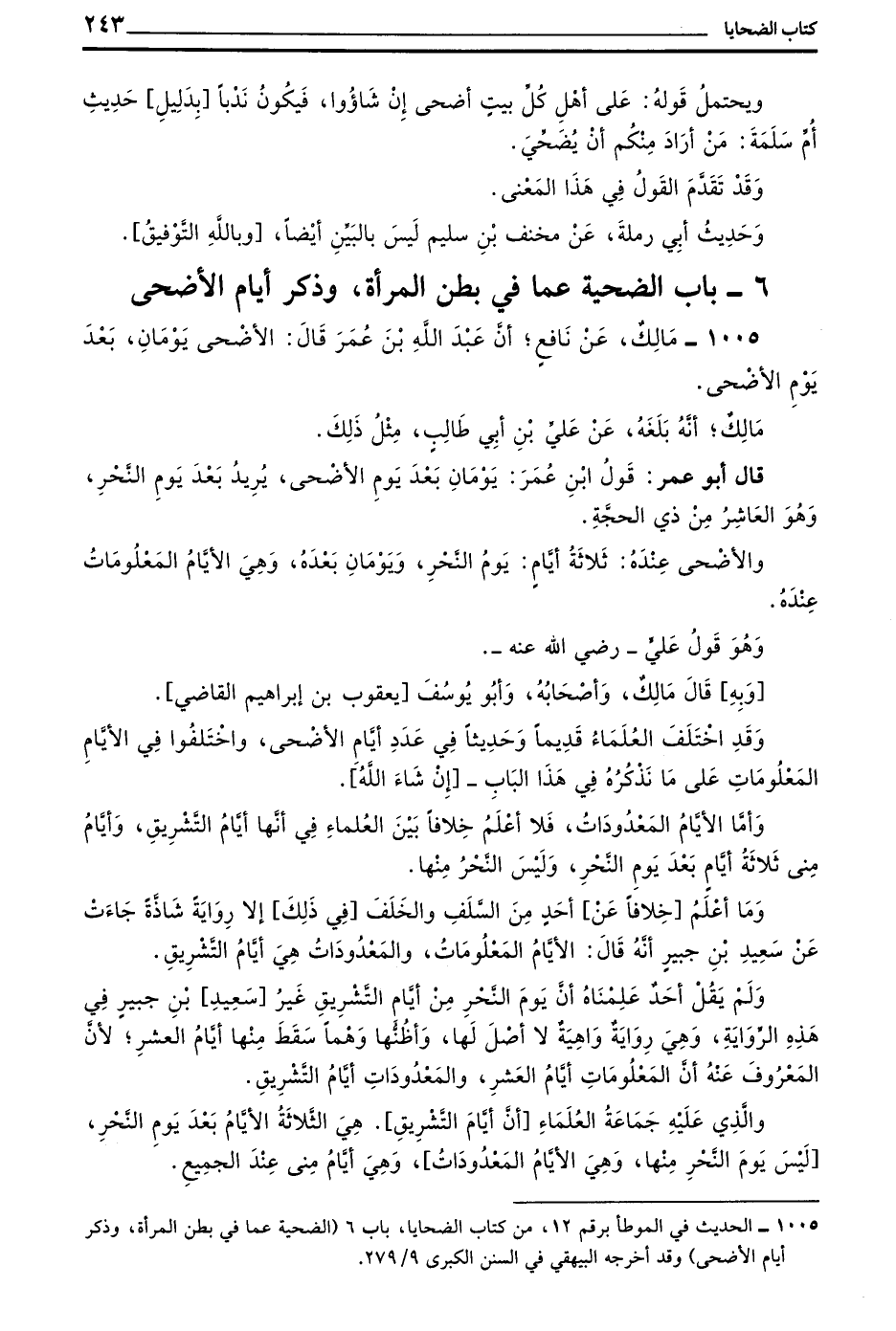 وَقَدِ اخْتَلَفَ الْعُلَمَاءُ قَدِيمًا وَحَدِيثًا فِي عَدَدِ أَيَّامِ الْأَضْحَى وَاخْتَلَفُوا فِي الْأَيَّامِ الْمَعْلُومَاتِ عَلَى مَا نَذْكُرُهُ فِي هَذَا الْبَابِ - إِنْ شَاءَ اللَّهُ