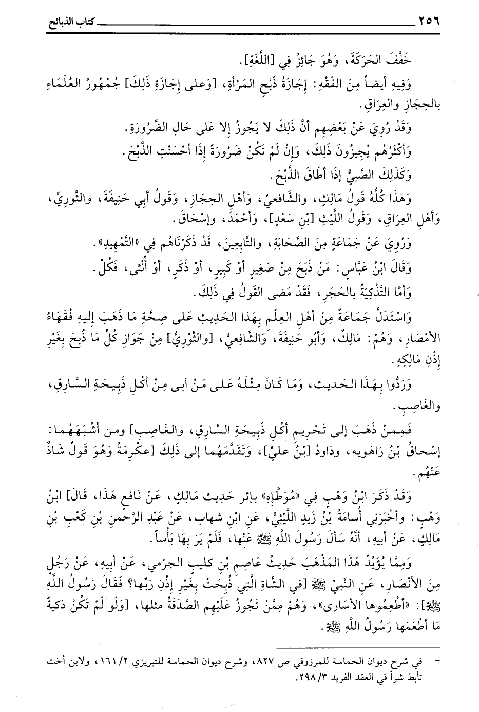 خَفَّفَ الْحَرَكَةَ وَهُوَ جَائِزٌ فِي اللُّغَةِ وَفِيهِ أَيْضًا مِنَ الْفِقْهِ إِجَازَةُ ذَبْحِ الْمَرْأَةِ وَعَلَى إِجَازَةِ ذَلِكَ جُمْهُورُ الْعُلَمَاءِ بِالْحِجَازِ وَالْعِرَاقِ