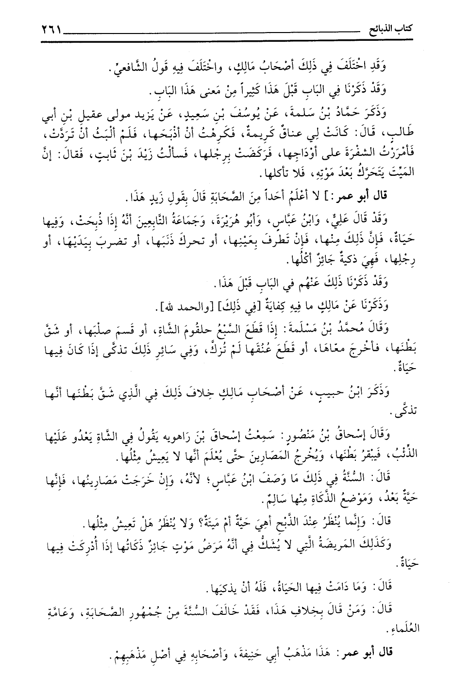 وقد قال علي وبن عَبَّاسٍ وَأَبُو هُرَيْرَةَ وَجَمَاعَةُ التَّابِعِينَ أَنَّهُ إِذَا ذُبِحَتْ وَفِيهَا حَيَاةٌ فَإِنَّ ذَلِكَ مِنْهَا فَإِنْ تَطْرَفْ بِعَيْنِهَا أَوْ تُحَرِّكْ ذَنَبَهَا أَوْ تَضْرِبْ بِيَدَيْهَا أَوْ رِجْلِهَا فَهِيَ ذَكِيَّةٌ جَائِزٌ أَكْلُهَا