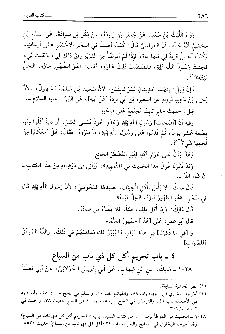 (4 - بَابُ تَحْرِيمِ أَكْلِ كُلِّ ذِي نَابٍ مِنَ السِّبَاعِ)