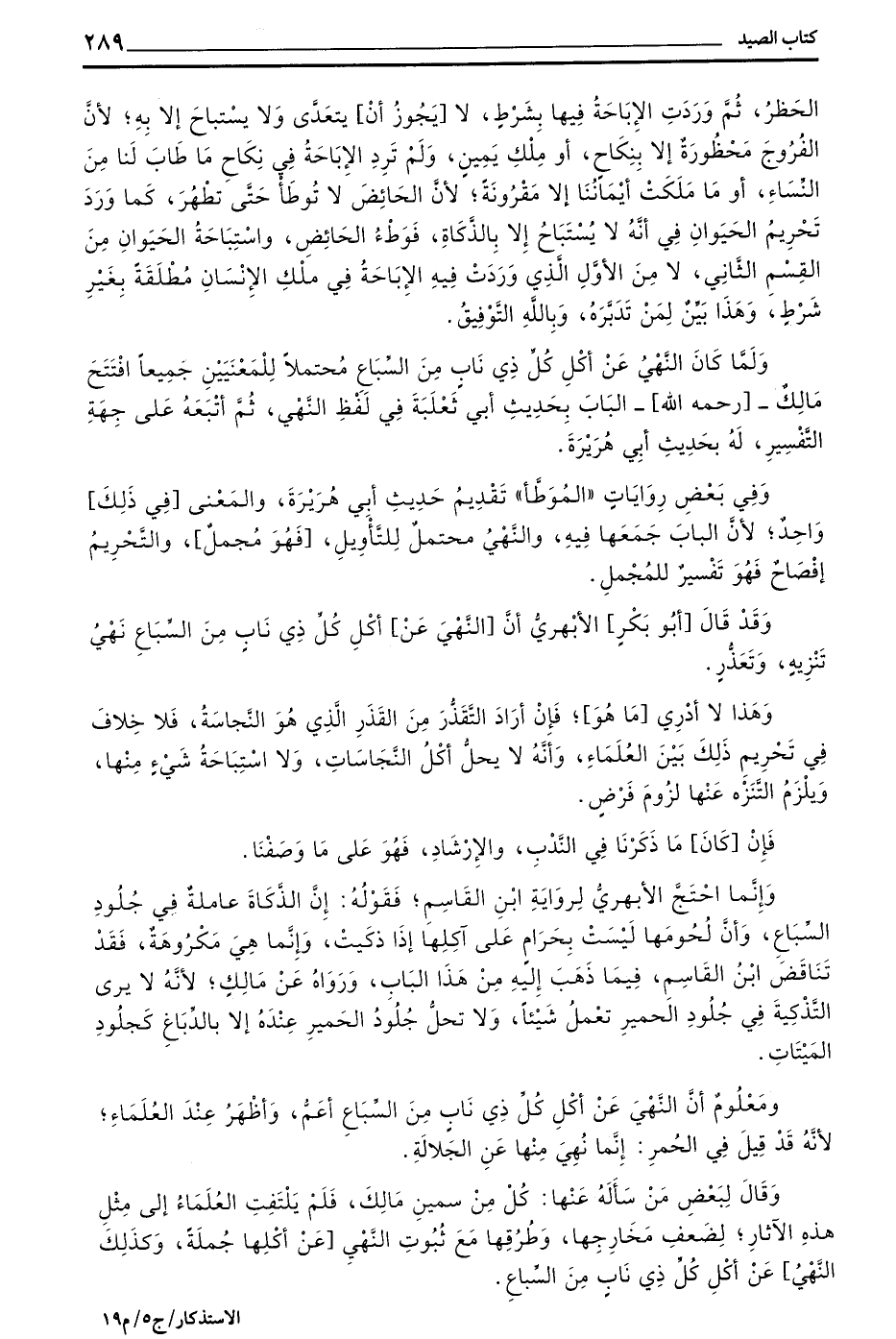 وَقَدْ قَالَ أَبُو بَكْرٍ الْأَبْهَرِيُّ أَنَّ النَّهْيَ عَنْ أَكْلِ كُلِّ ذِي نَابٍ مِنَ السِّبَاعِ نَهْيُ تنزيه وتعذر