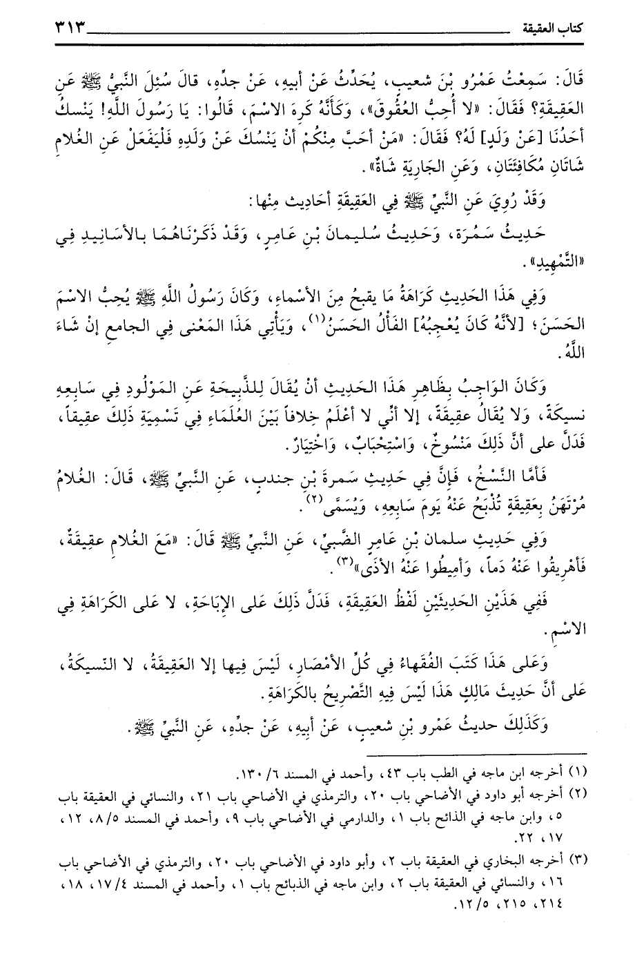 وَقَدْ رُوِيَ عَنِ النَّبِيِّ صَلَّى اللَّهُ عَلَيْهِ وَسَلَّمَ فِي الْعَقِيقَةِ أَحَادِيثُ مِنْهَا