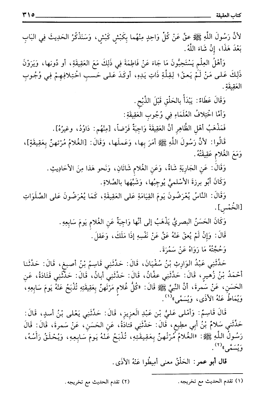 وَكَانَ الْحَسَنُ الْبَصْرِيُّ يَذْهَبُ إِلَى أَنَّهَا وَاجِبَةٌ عَنِ الْغُلَامِ يَوْمَ سَابِعِهِ