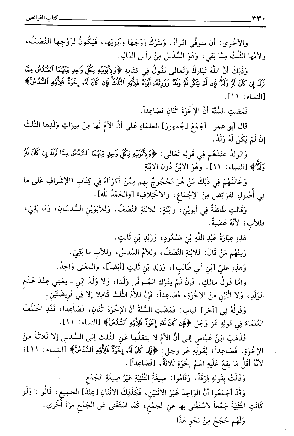 وَذَلِكَ أَنَّ اللَّهَ تَبَارَكَ وَتَعَالَى يَقُولُ فِي كِتَابِهِ (وَلِأَبَوَيْهِ لِكُلِّ وَاحِدٍ مِنْهُمَا السُّدُسُ مِمَّا تَرَكَ إِنْ كَانَ لَهُ وَلَدٌ فَإِنْ لَمْ يَكُنْ لَهُ وَلَدٌ وَوَرِثَهُ أَبَوَاهُ فَلِأُمِّهِ الثُّلُثُ فَإِنْ كَانَ لَهُ إِخْوَةٌ فَلِأُمِّهِ السُّدُسُ) النِّسَاءِ 11