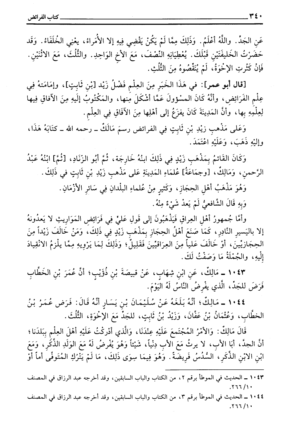 وَعَلَى مَذْهَبِ زَيْدِ بْنِ ثَابِتٍ فِي الْفَرَائِضِ رَسَمَ مَالِكٌ - رَحِمَهُ اللَّهُ - كِتَابَهُ هَذَا وَإِلَيْهِ ذَهَبَ وَعَلَيْهِ اعْتَمَدَ
