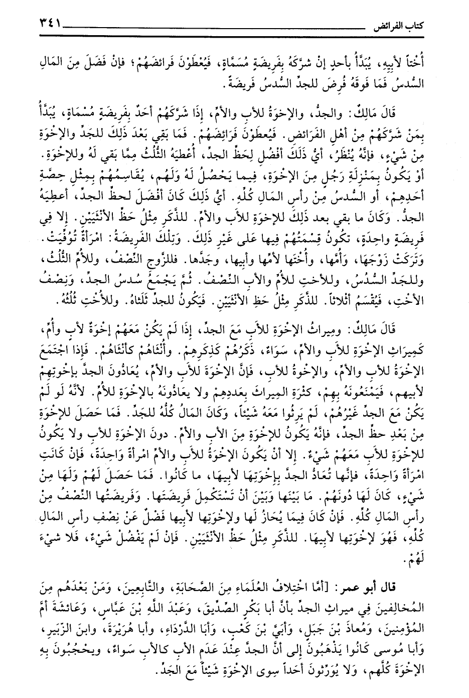 قَالَ أَبُو عُمَرَ أَمَّا اخْتِلَافُ الْعُلَمَاءِ مِنَ الصَّحَابَةِ وَالتَّابِعِينَ وَمَنْ بَعْدَهُمْ مِنَ الْمُخَالِفِينَ فِي مِيرَاثِ الْجَدِّ بِأَنَّ أَبَا بَكْرٍ الصَّدِّيقَ وَعَبْدَ اللَّهِ بْنَ عَبَّاسٍ وَعَائِشَةَ أُمَّ الْمُؤْمِنِينَ وَمُعَاذَ بْنَ جَبَلٍ وَأُبَيَّ بْنَ كَعْبٍ وَأَبَا الدَّرْدَاءِ وَأَبَا هريرة وبن الزُّبَيْرِ وَأَبَا مُوسَى كَانُوا يَذْهَبُونَ إِلَى أَنَّ الْجَدَّ عِنْدَ عَدَمِ الْأَبِ كَالْأَبِ سَوَاءٌ وَيَحْجُبُونَ بِهِ الْإِخْوَةَ كُلَّهُمْ وَلَا يُورِثُونَ أَحَدًا سِوَى الْإِخْوَةِ شَيْئًا مَعَ الْجَدِّ