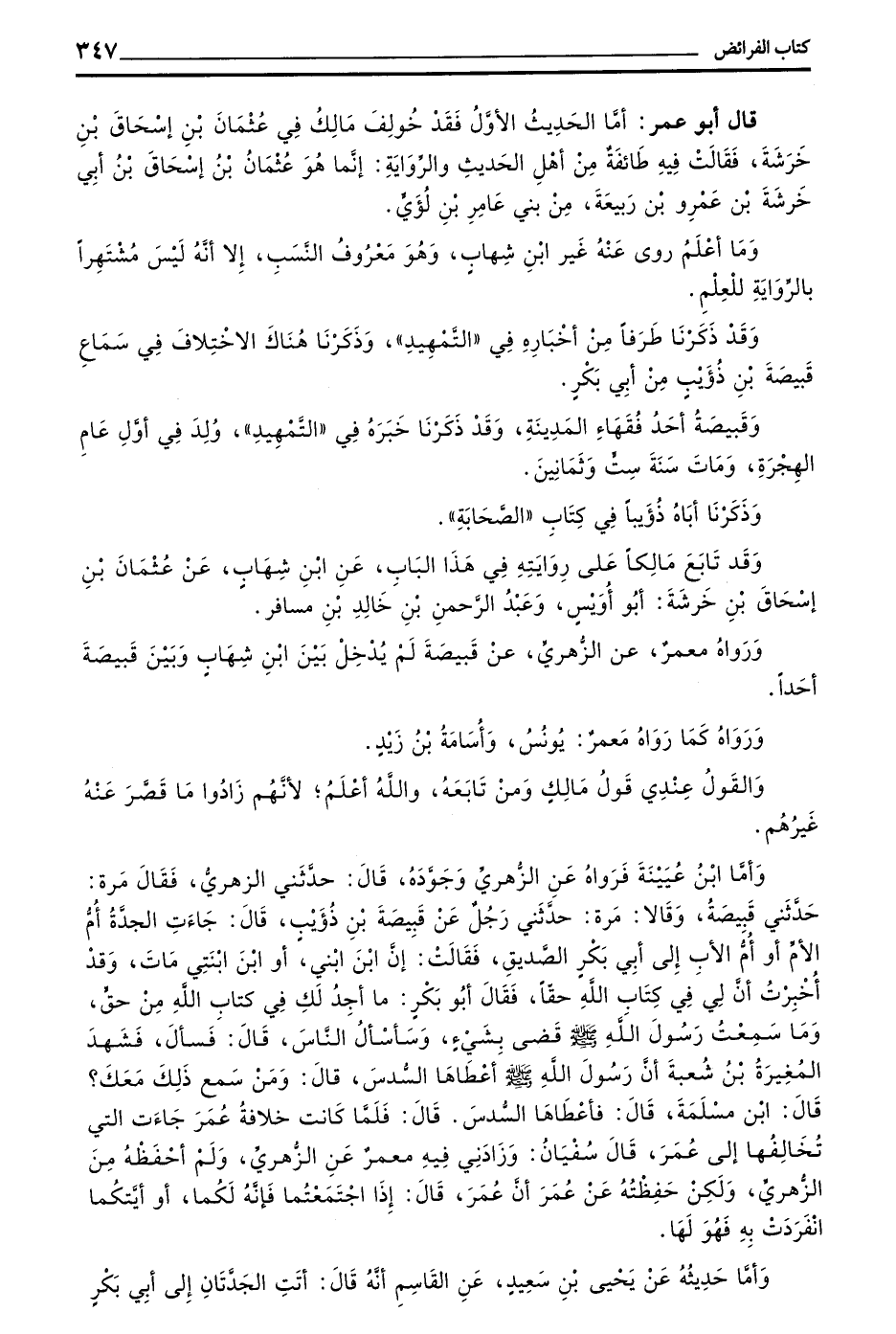 قَالَ أَبُو عُمَرَ أَمَّا الْحَدِيثُ الْأَوَّلُ فَقَدْ خُولِفَ مَالِكٌ فِي عُثْمَانَ بْنِ إِسْحَاقَ بْنِ خَرَشَةَ فَقَالَتْ فِيهِ طَائِفَةٌ مِنْ أَهْلِ الْحَدِيثِ وَالرِّوَايَةِ إِنَّمَا هُوَ عُثْمَانُ بْنُ إِسْحَاقَ بْنِ أَبِي خَرَشَةَ بْنِ عَمْرِو بْنِ رَبِيعَةَ مِنْ بَنِي عَامِرِ بْنِ لُؤَيٍّ