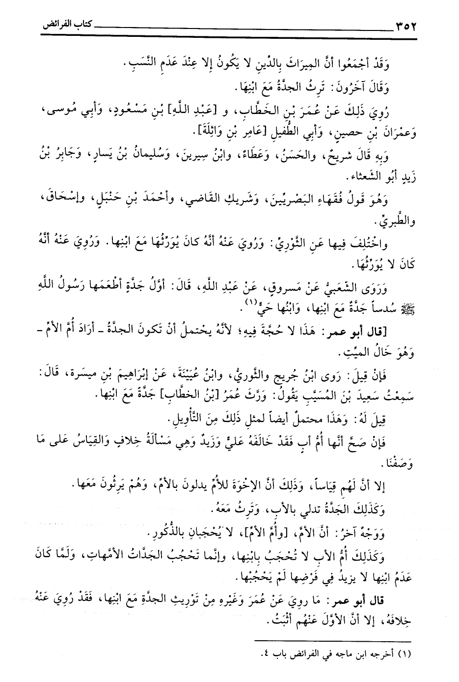 قَالَ أَبُو عُمَرَ مَا رُوِيَ عَنْ عُمَرَ وَغَيْرِهِ مِنْ تَوْرِيثِ الْجَدَّةِ مَعَ ابْنِهَا فَقَدْ رُوِيَ عَنْهُ خِلَافُهُ إِلَّا أَنَّ الأول عنهم أثبت