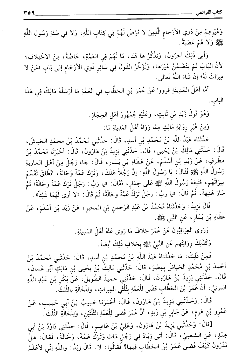 وأبى ذلك آخرون ونذكر ها هنا مَا لَهُمْ فِي الْعَمَّةِ خَاصَّةً مِنَ الِاخْتِلَافِ لِأَنَّ الْبَابَ لَمْ يَتَضَمَّنْ غَيْرَهَا وَنُؤَخِّرُ الْقَوْلَ فِي سَائِرِ ذَوِي الْأَرْحَامِ إِلَى بَابِ ((مِنْ لَا مِيرَاثَ لَهُ)) إِنْ شَاءَ اللَّهُ تَعَالَى