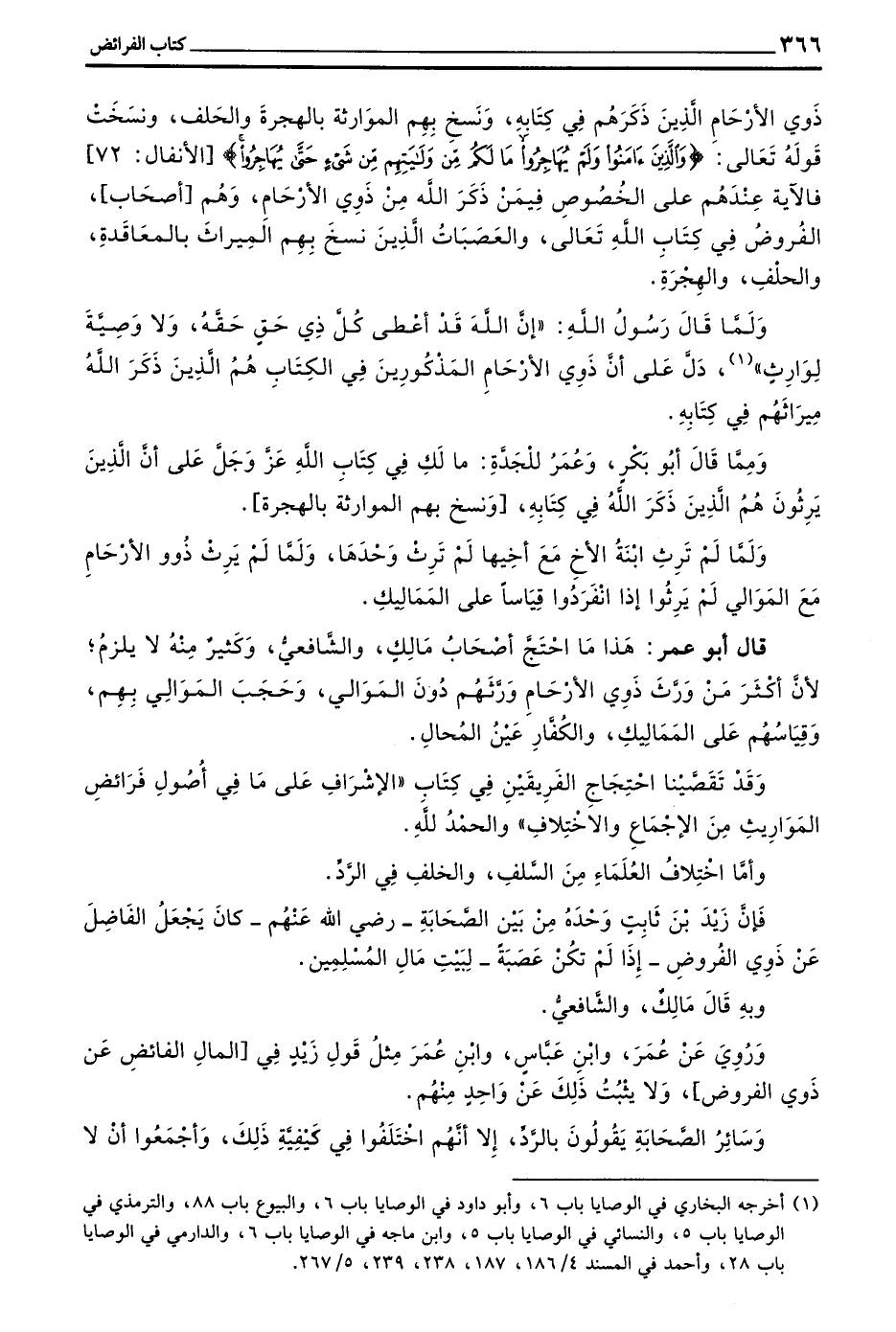 وَقَدْ تَقَصَّيْنَا احْتِجَاجَ الْفَرِيقَيْنِ فِي كِتَابِ ((الْإِشْرَافِ عَلَى مَا فِي أُصُولِ فَرَائِضِ الْمَوَارِيثِ مِنَ الْإِجْمَاعِ وَالِاخْتِلَافِ)) وَالْحَمْدُ لِلَّهِ
