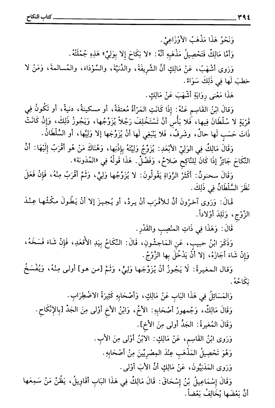 وَأَمَّا مَالِكٌ فَتَحْصِيلُ مَذْهَبِهِ أَنَّهُ ((لَا نِكَاحَ إِلَّا بِوَلِيٍّ)) هَذِهِ جُمْلَتُهُ
