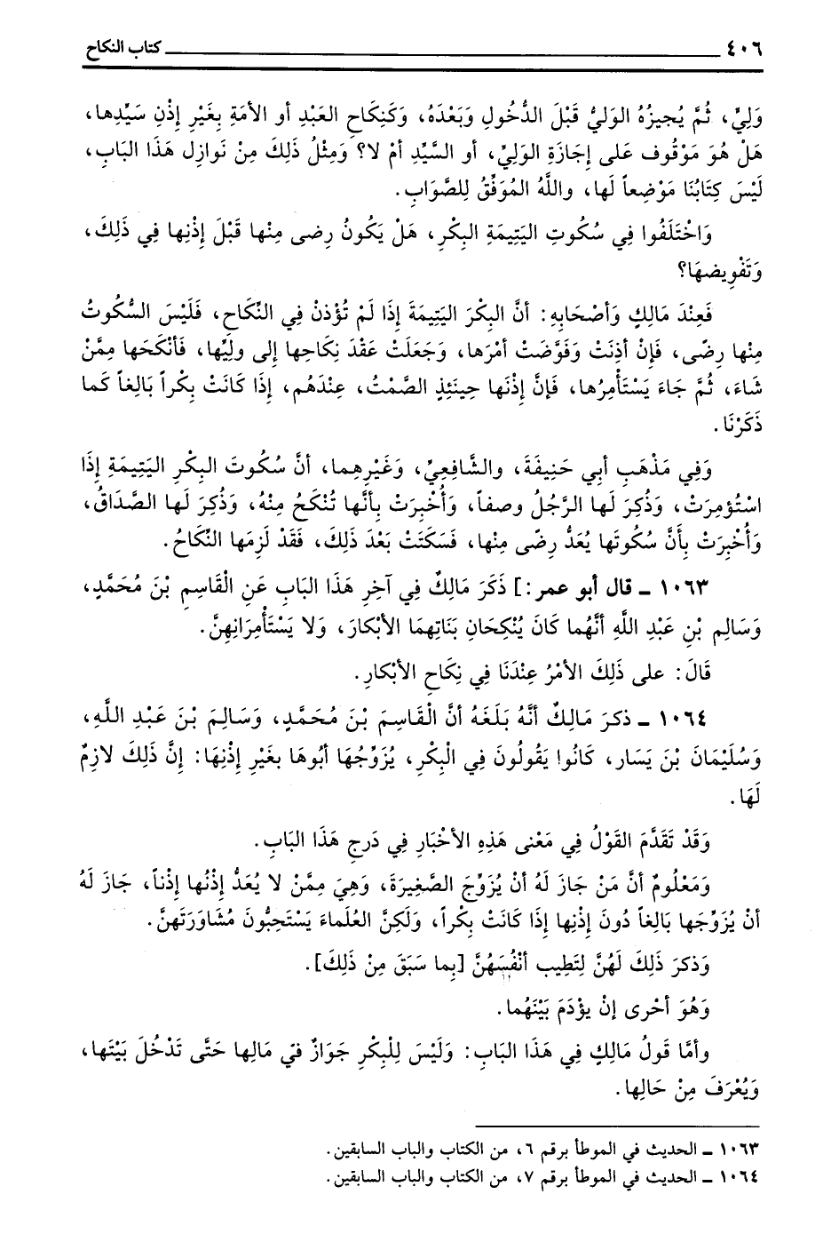 1063 - قَالَ أَبُو عُمَرَ ذَكَرَ مَالِكٌ فِي آخِرِ هَذَا الْبَابِ عَنِ الْقَاسِمَ بْنَ مُحَمَّدٍ وَسَالِمَ بْنَ عَبْدِ اللَّهِ أَنَّهُمَا كَانَ يُنْكِحَانِ بَنَاتِهِمَا الْأَبْكَارَ وَلَا يَسْتَأْمِرَانِهِنَّ
