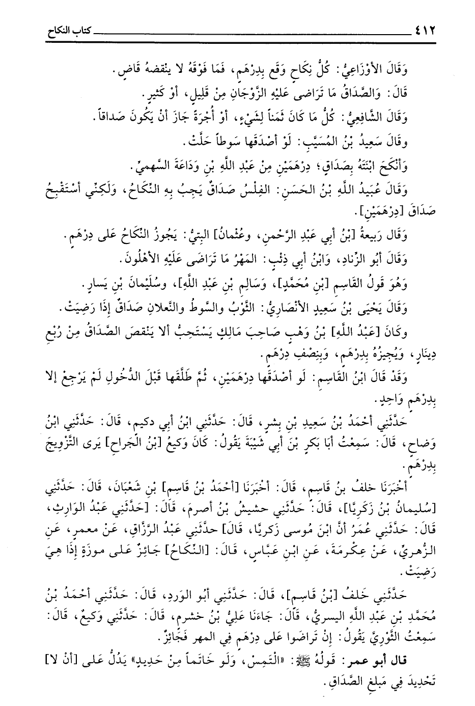 وَقَالَ الْأَوْزَاعِيُّ كُلُّ نِكَاحٍ وَقَعَ بِدِرْهَمٍ فَمَا فَوْقَهُ لَا يَنْقُضُهُ قَاضٍ