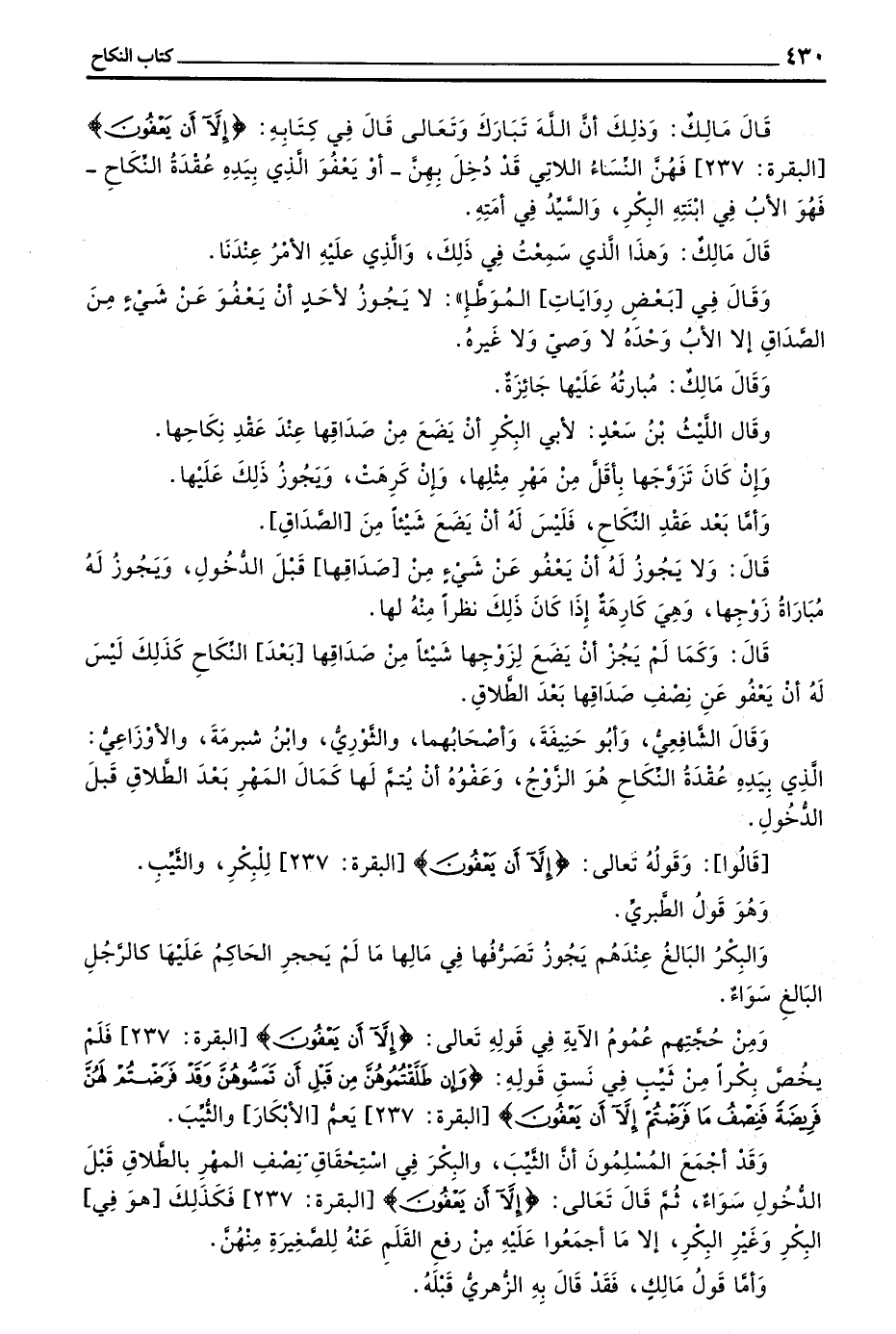 وَقَدْ أَجْمَعَ الْمُسْلِمُونَ أَنَّ الثَّيِّبَ وَالْبِكْرَ فِي اسْتِحْقَاقِ نِصْفِ الْمَهْرِ بِالطَّلَاقِ قَبْلَ الدُّخُولِ سَوَاءٌ ثُمَّ قَالَ تَعَالَى (إِلَّا أَنْ يَعْفُونَ) الْبَقَرَةِ 237 فَكَذَلِكَ هُوَ فِي الْبِكْرِ وَغَيْرِ الْبِكْرِ إِلَّا مَا أَجْمَعُوا عَلَيْهِ مِنْ رَفْعِ الْقَلَمِ عَنْهُ لِلصَّغِيرَةِ مِنْهُنَّ