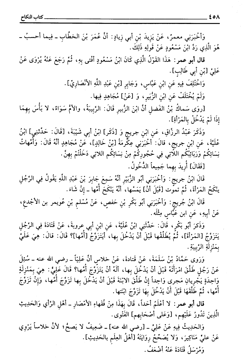 وَذَكَرَ عَبْدُ الرزاق عن بن جريج وذكر بن أبي شيبة قال حدثني بن علية عن بن جُرَيْجٍ قَالَ أَخْبَرَنِي عِكْرِمَةُ بْنُ خَالِدٍ عَنْ مُجَاهِدٍ أَنَّهُ قَالَ وَأُمَّهَاتُ نِسَائِكُمْ وَرَبَائِبُكُمُ اللَّاتِي فِي حُجُورِكُمْ مِنْ نِسَائِكُمُ اللَّاتِي دَخَلْتُمْ بِهِنَّ