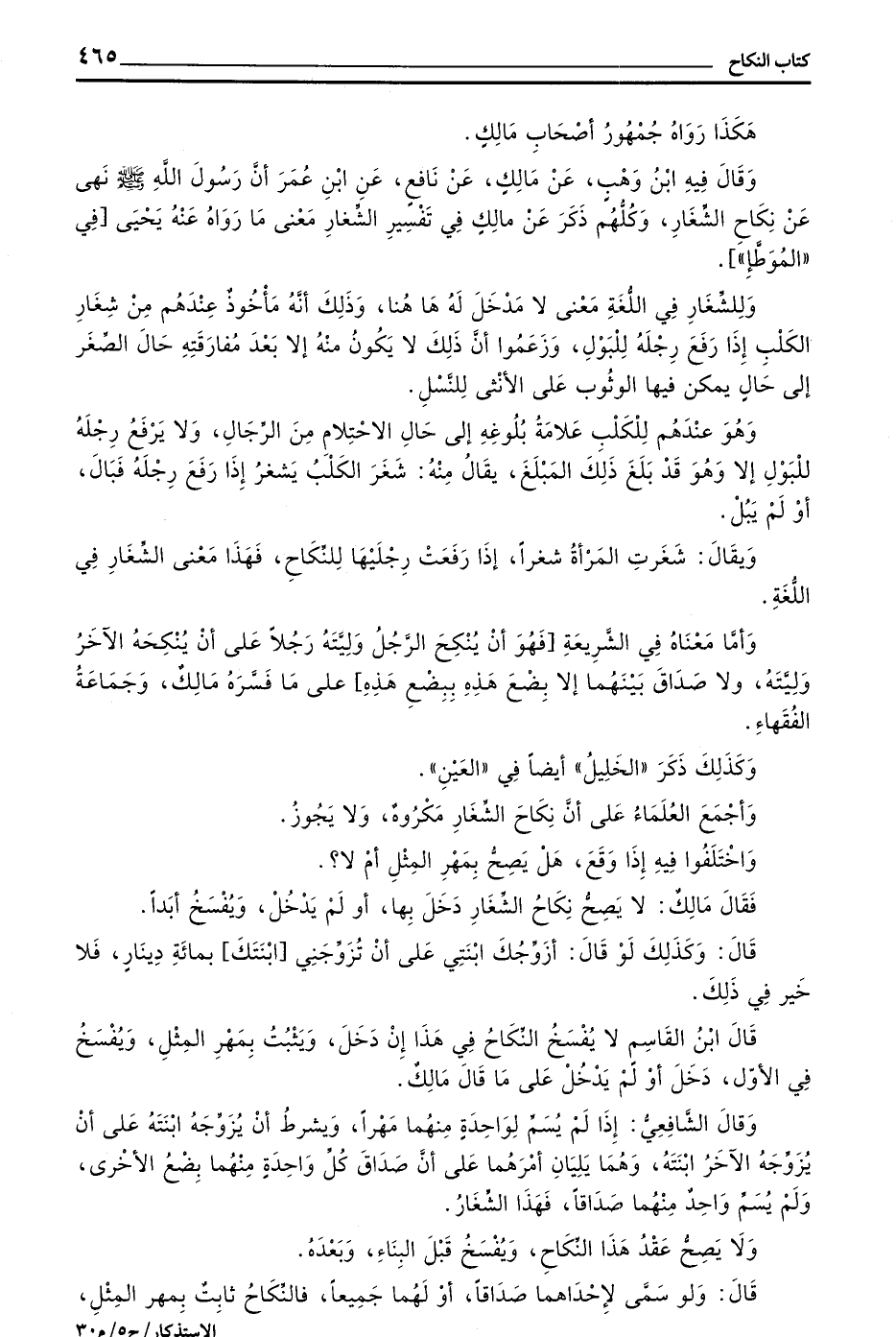 وَلِلشِّغَارِ في اللغة معنى لا مدخل له ها هنا وَذَلِكَ أَنَّهُ مَأْخُوذٌ عِنْدَهُمْ مِنْ شِغَارِ الْكَلْبِ إِذَا رَفَعَ رِجْلَهُ لِلْبَوْلِ وَزَعَمُوا أَنَّ ذَلِكَ لَا يَكُونُ مِنْهُ إِلَّا بَعْدَ مُفَارَقَتِهِ حَالَ الصِّغَرِ إِلَى حَالٍ يُمْكِنُ فِيهَا الْوُثُوبُ عَلَى الْأُنْثَى لِلنَّسْلِ