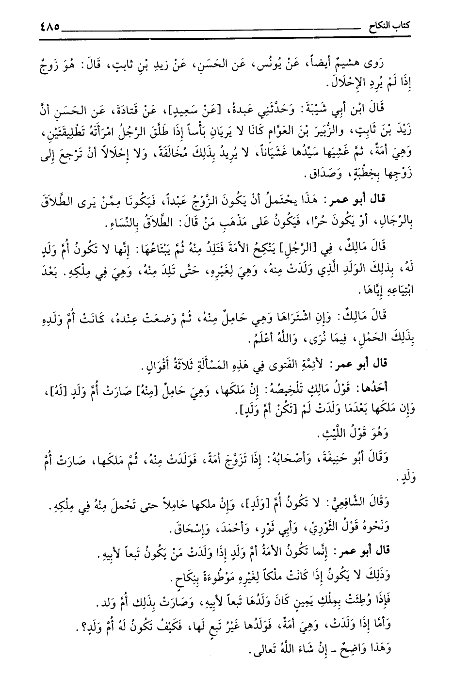 قَالَ أَبُو عُمَرَ لِأَئِمَّةِ الْفَتْوَى فِي هَذِهِ الْمَسْأَلَةِ ثَلَاثَةُ أَقْوَالٍ