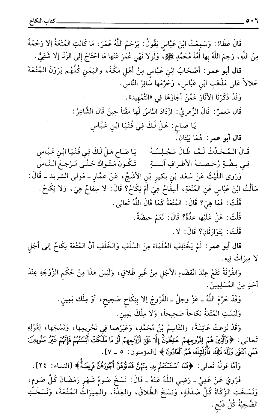 قال أبو عمر أصحاب بن عَبَّاسٍ مِنْ أَهْلِ مَكَّةَ وَالْيَمَنِ كُلُّهُمْ يَرَوْنَ المتعة حلالا على مذهب بن عَبَّاسٍ وَحَرَّمَهَا سَائِرُ النَّاسِ