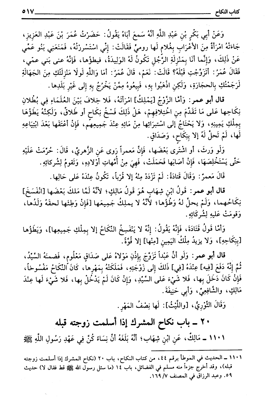 1101 - مالك عن بن شِهَابٍ أَنَّهُ بَلَغَهُ أَنَّ نِسَاءً كُنَّ فِي عَهْدِ رَسُولِ اللَّهِ صَلَّى اللَّهُ عَلَيْهِ وَسَلَّمَ
