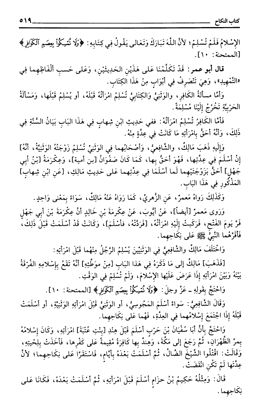 الْإِسْلَامَ فَلَمْ تُسْلِمْ لِأَنَّ اللَّهَ تَبَارَكَ وَتَعَالَى يَقُولُ فِي كِتَابِهِ (وَلَا تُمْسِكُوا بِعِصَمِ الْكَوَافِرِ) الْمُمْتَحَنَةِ 10