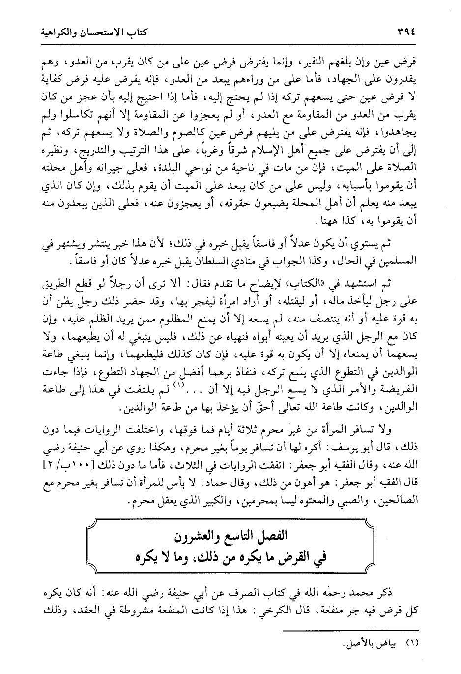 الفصل التاسع والعشرون في القرض ما يكره من ذلك، وما لا يكره