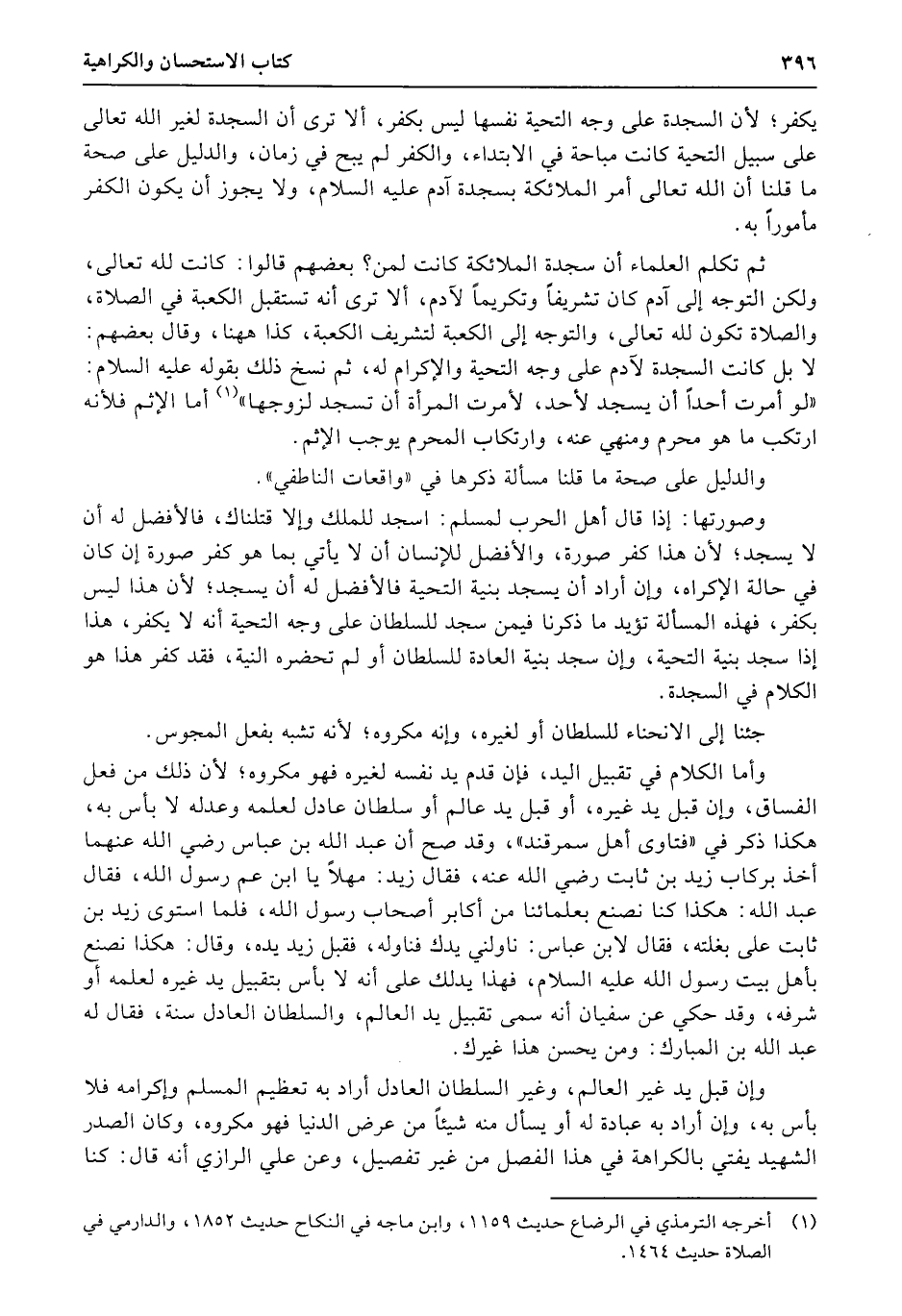 وإن قبل يد غير العالم، وغير السلطان العادل أراد به تعظيم المسلم وإكرامه فلا بأس به، وإن أراد به عبادة له أو يسأل منه شيئاً من عرض الدنيا فهو مكروه، وكان الصدر الشهيد يفتي بالكراهة في هذا الفصل من غير تفصيل، وعن علي الرازي أنه قال: كنا