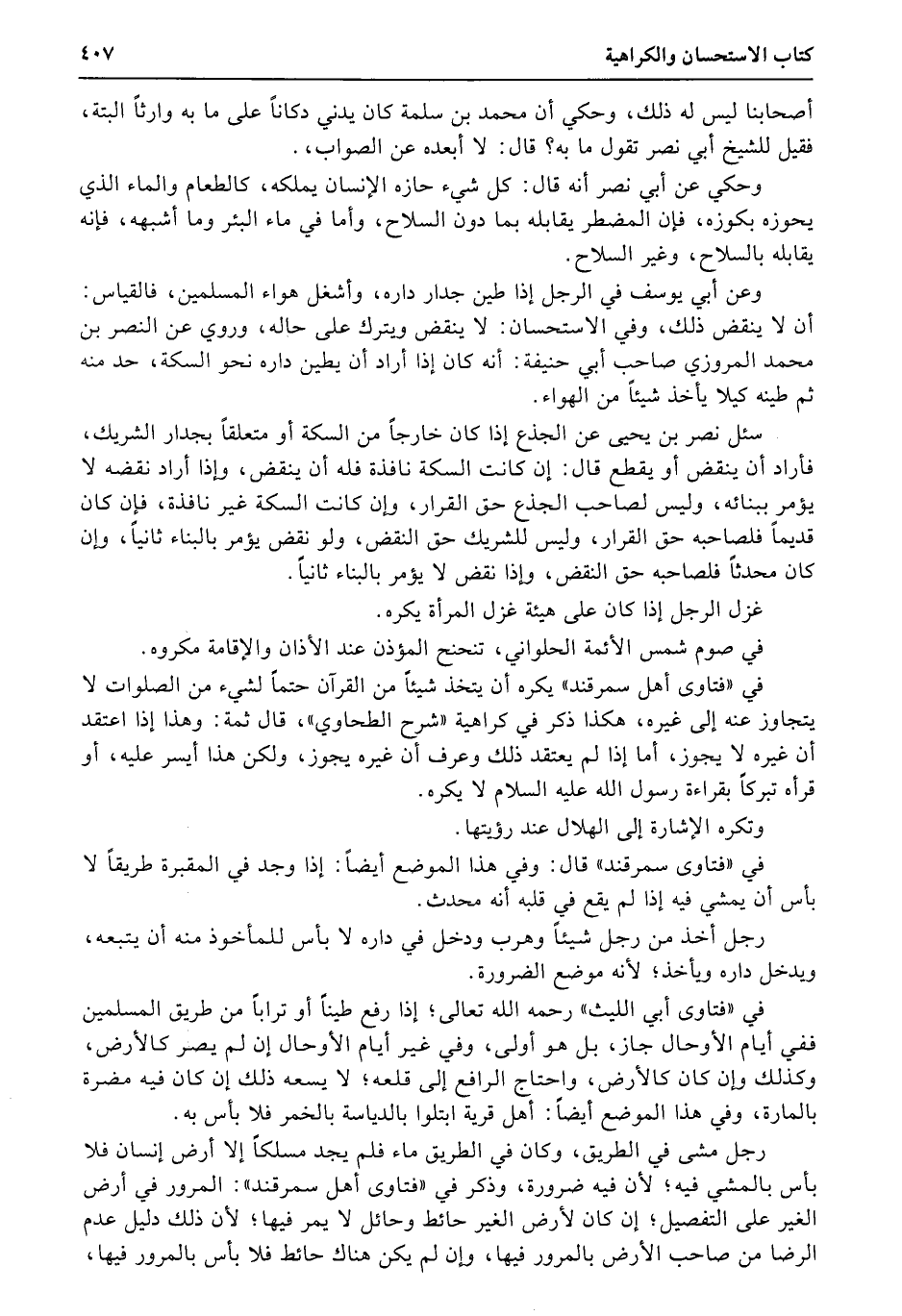رجل مشى في الطريق، وكان في الطريق ماء فلم يجد مسلكاً إلا أرض إنسان فلا بأس بالمشي فيه؛ لأن فيه ضرورة، وذكر في «فتاوى أهل سمرقند» : المرور في أرض الغير على التفصيل؛ إن كان لأرض الغير حائط وحائل لا يمر فيها؛ لأن ذلك دليل عدم الرضا من صاحب الأرض بالمرور فيها، وإن لم يكن هناك حائط فلا بأس بالمرور فيها،