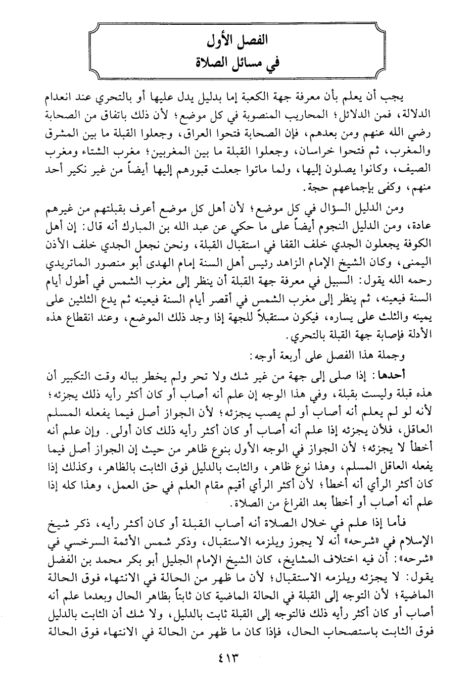 الفصل الأول في مسائل الصلاة