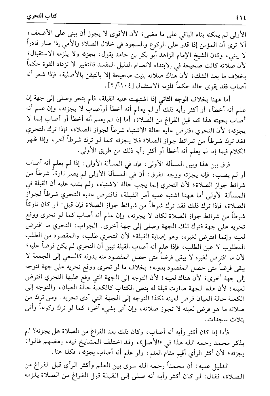 الدليل عليه: أن محمداً رحمه الله سوى بين العلم وأكثر الرأي قبل الفراغ من الصلاة، فقال: لو كان أكثر رأيه أنه صلى إلى القبلة قبل الفراغ من الصلاة يلزمه