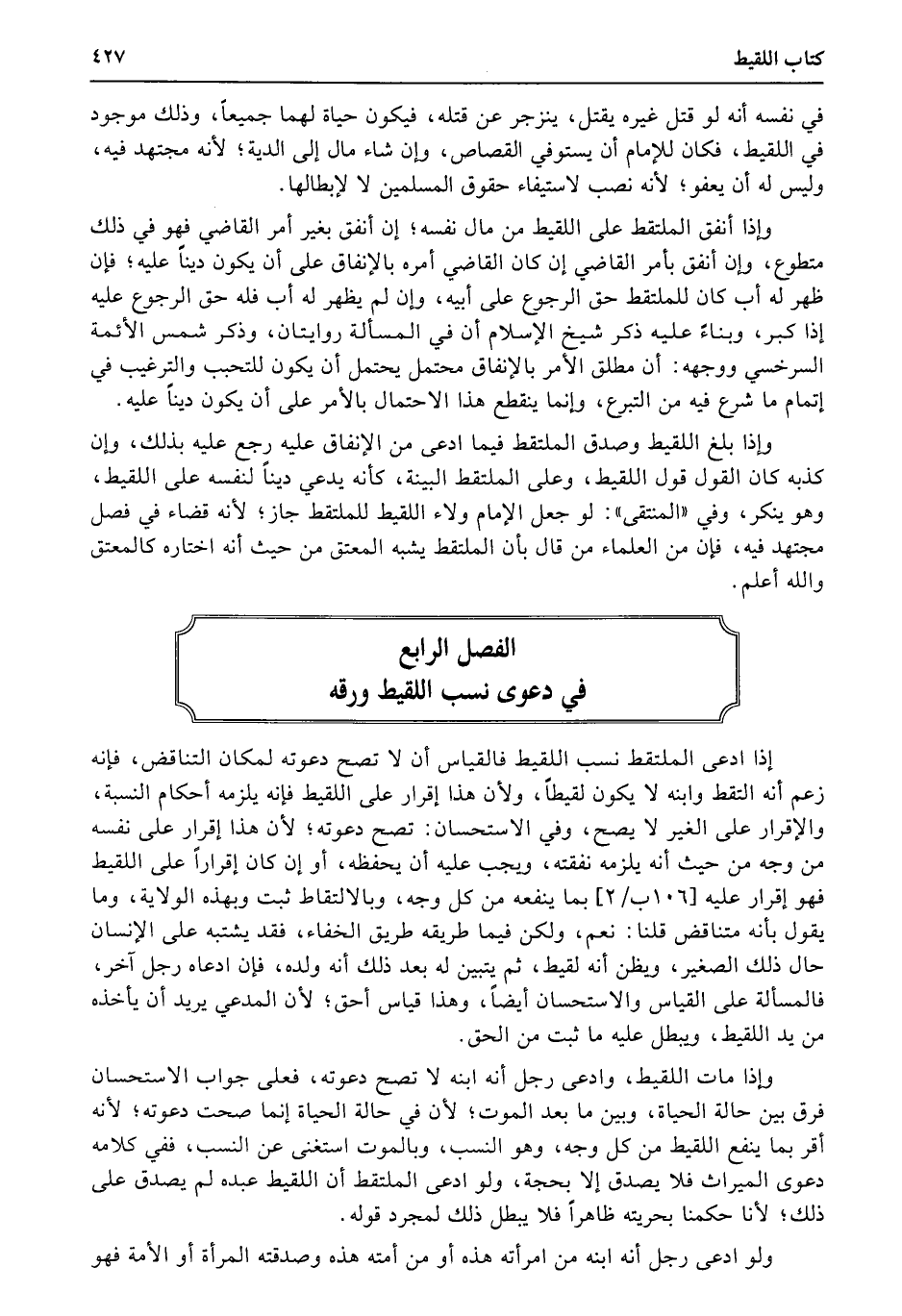 الفصل الرابع في دعوى نسب اللقيط ورقه