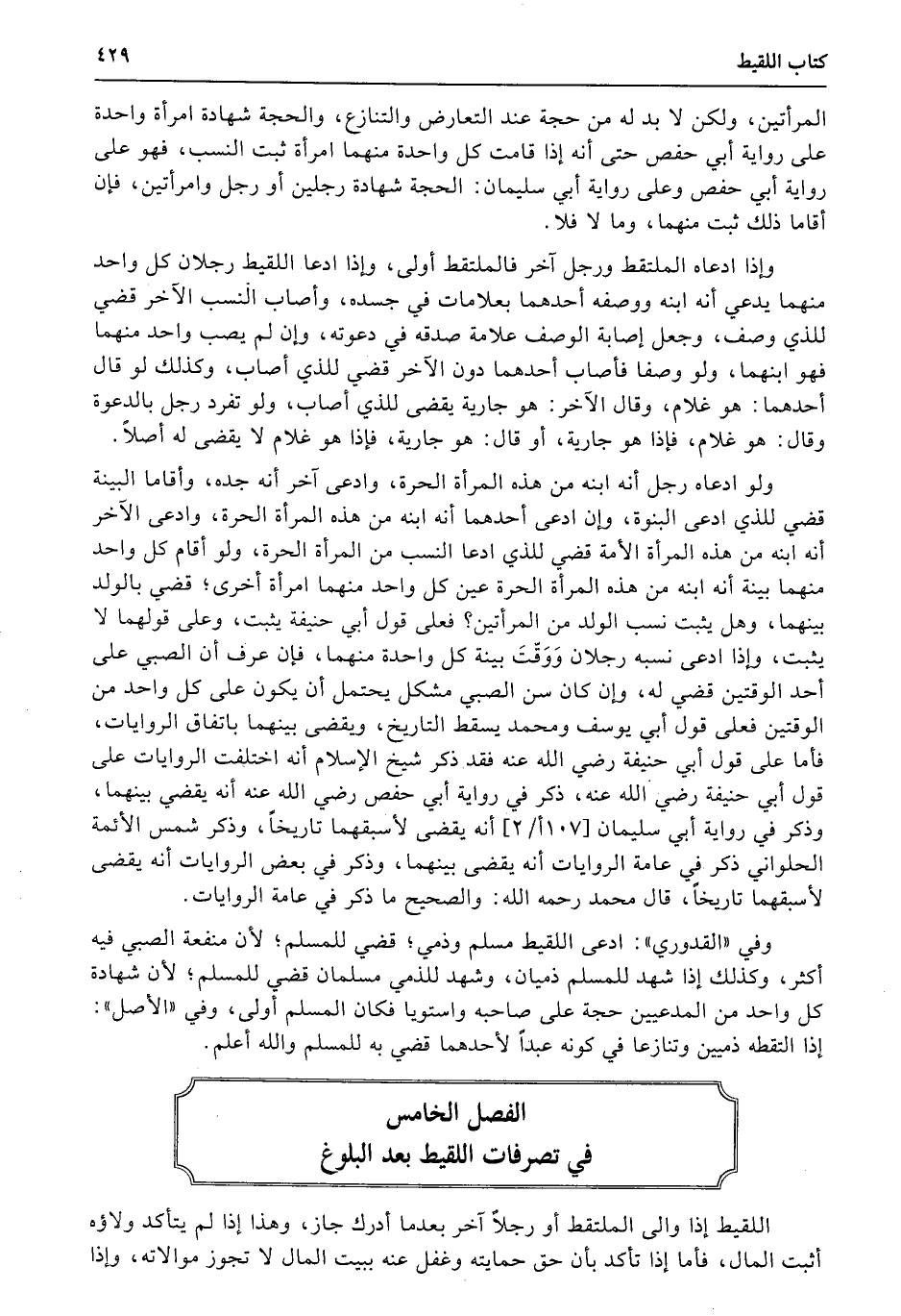 الفصل الخامس في تصرفات اللقيط بعد البلوغ