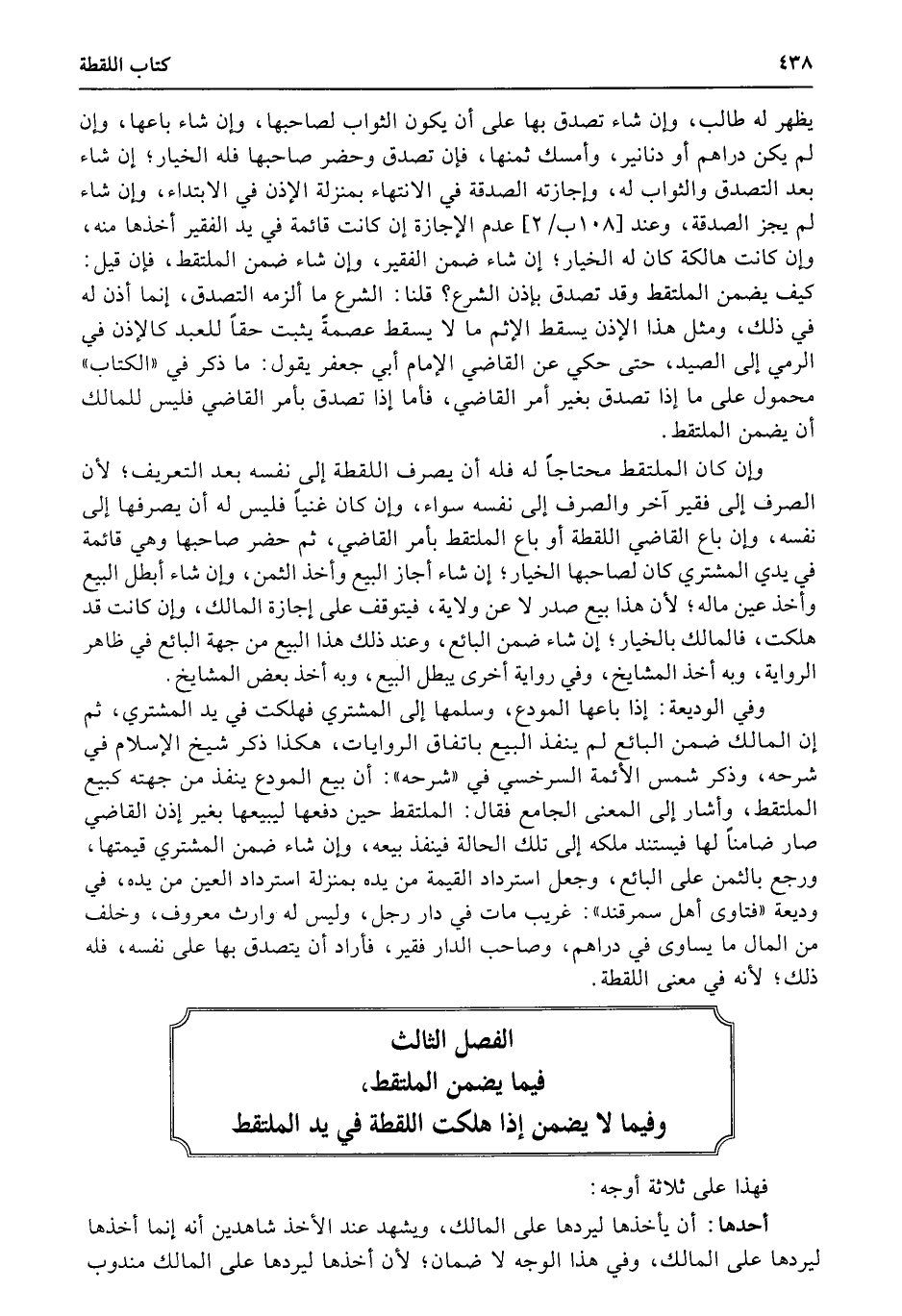 الفصل الثالث فيما يضمن الملتقط، وفيما لا يضمن إذا هلكت اللقطة في يد الملتقط
