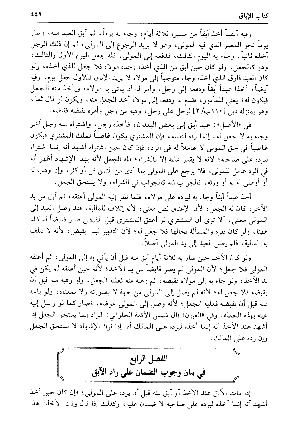 الفصل الرابع في بيان وجوب الضمان على راد الآبق
