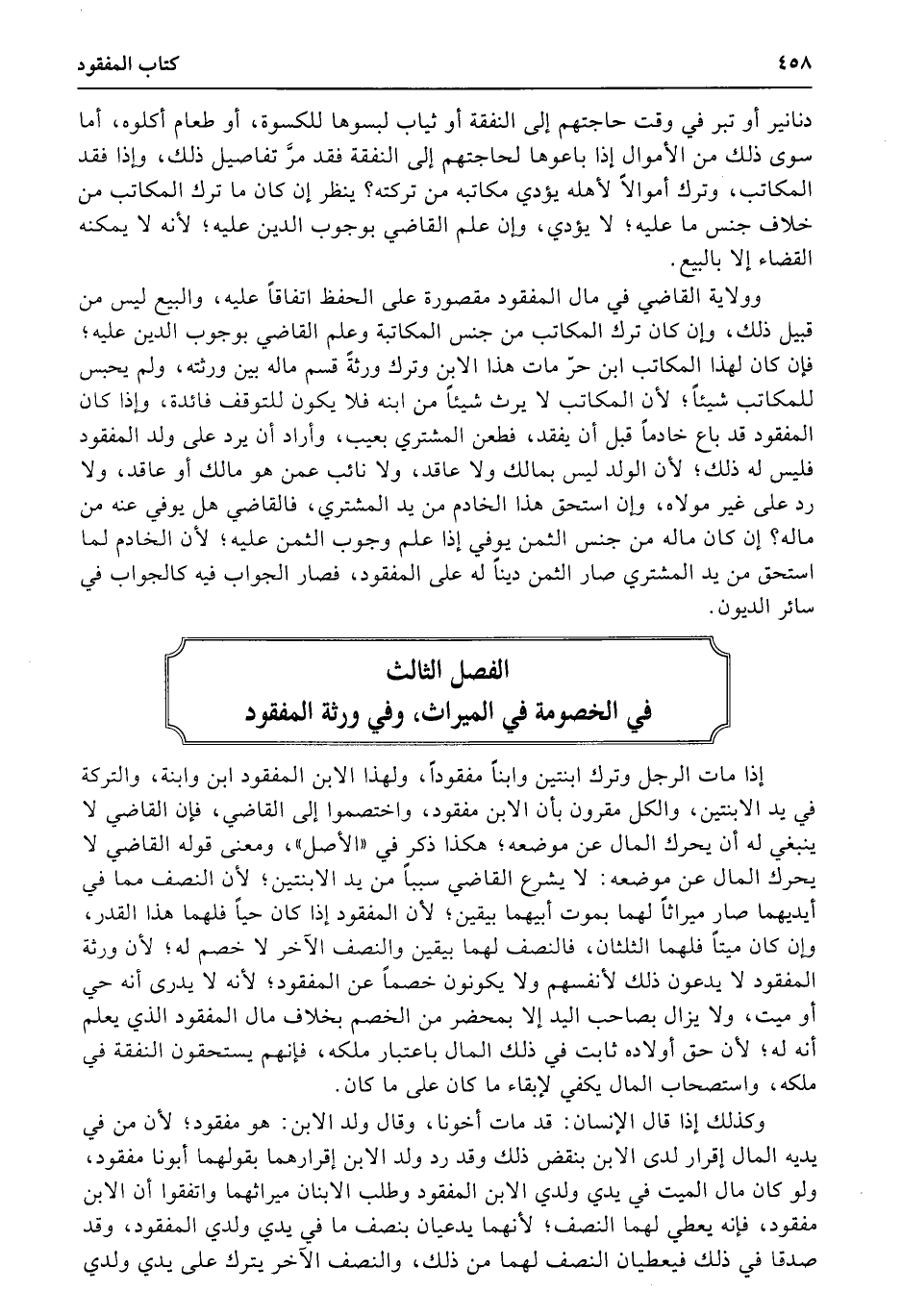 الفصل الثالث في الخصومة في الميراث، وفي الورثة مفقود