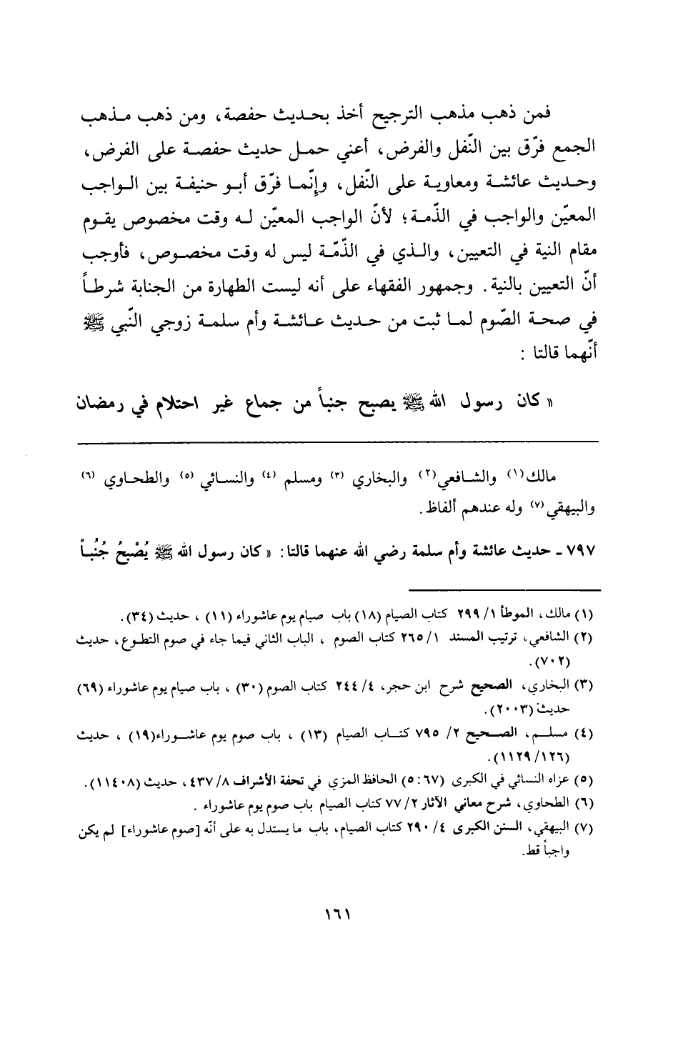 797 - حديث عائشة وأم سلمة -رضي الله عنهما- قالتا: "كان رسول الله - صلى الله عليه وسلم - يُصْبحُ جُنُبًا
