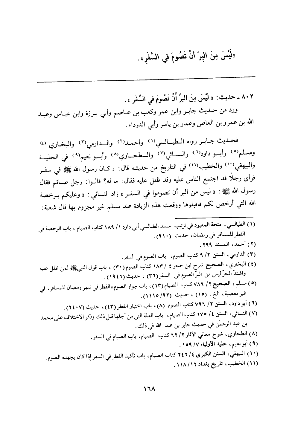 802 - حديث: "لَيْس مِنَ البر أن تَصُومَ في السفَر".