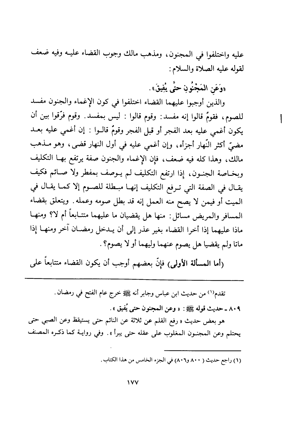 809 - حديث قوله - صلى الله عليه وسلم -: "وعن المجنون حتى يُفيق".